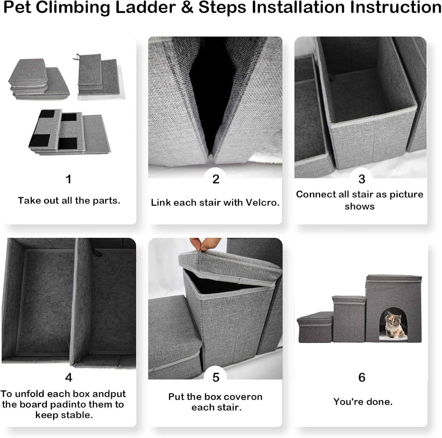- Easy to Assemble: it only takes you a couple of minutes to assemble these dog stairs β take out all subjects, expand the stairs and put in plates, then the lids which make up the top of the stairs get put on.