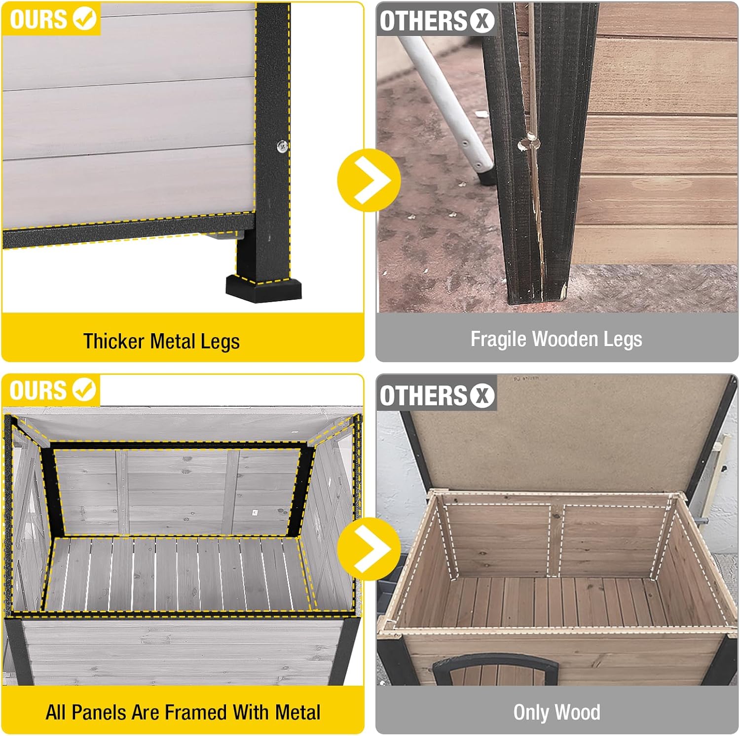 - What makes our dog house unique? Our products are made with all around strong iron frame to prevent destruction and chewing, makes it lasts much longer than other dog kennels