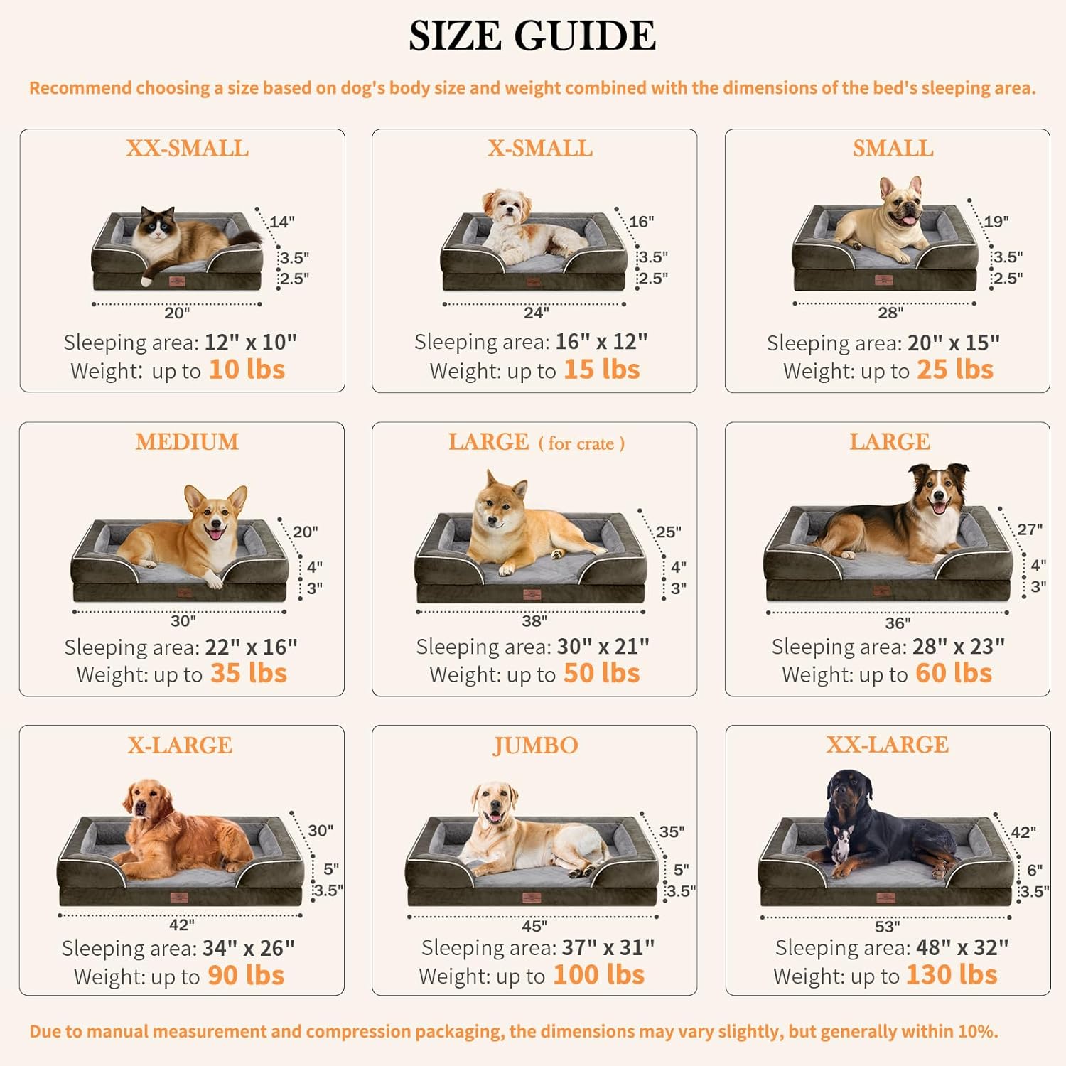 Comfort Expression XL Dog Bed for Extra Large Dogs, Waterproof Orthopedic Foam Dogs Beds with Bolster, Washable Dog Sofa Pet Bed with Removable Cover & Non-Slip Bottom(X-Large,Dark Green)