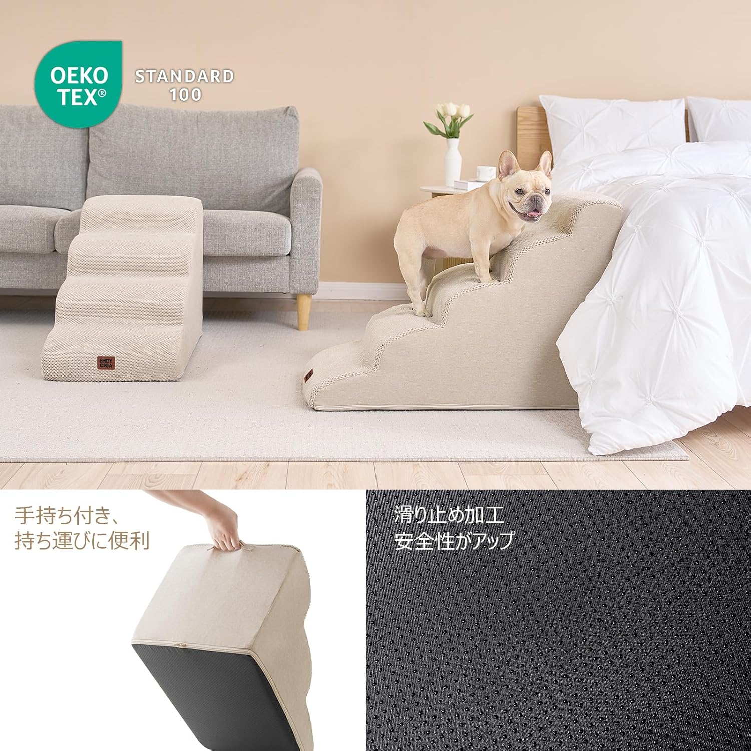 - COMFORTABLE PET STAIRS - This foam dog stair is designed directly against the edge of a bed, sofa or other furniture, so your pet can climb up and down comfortably.