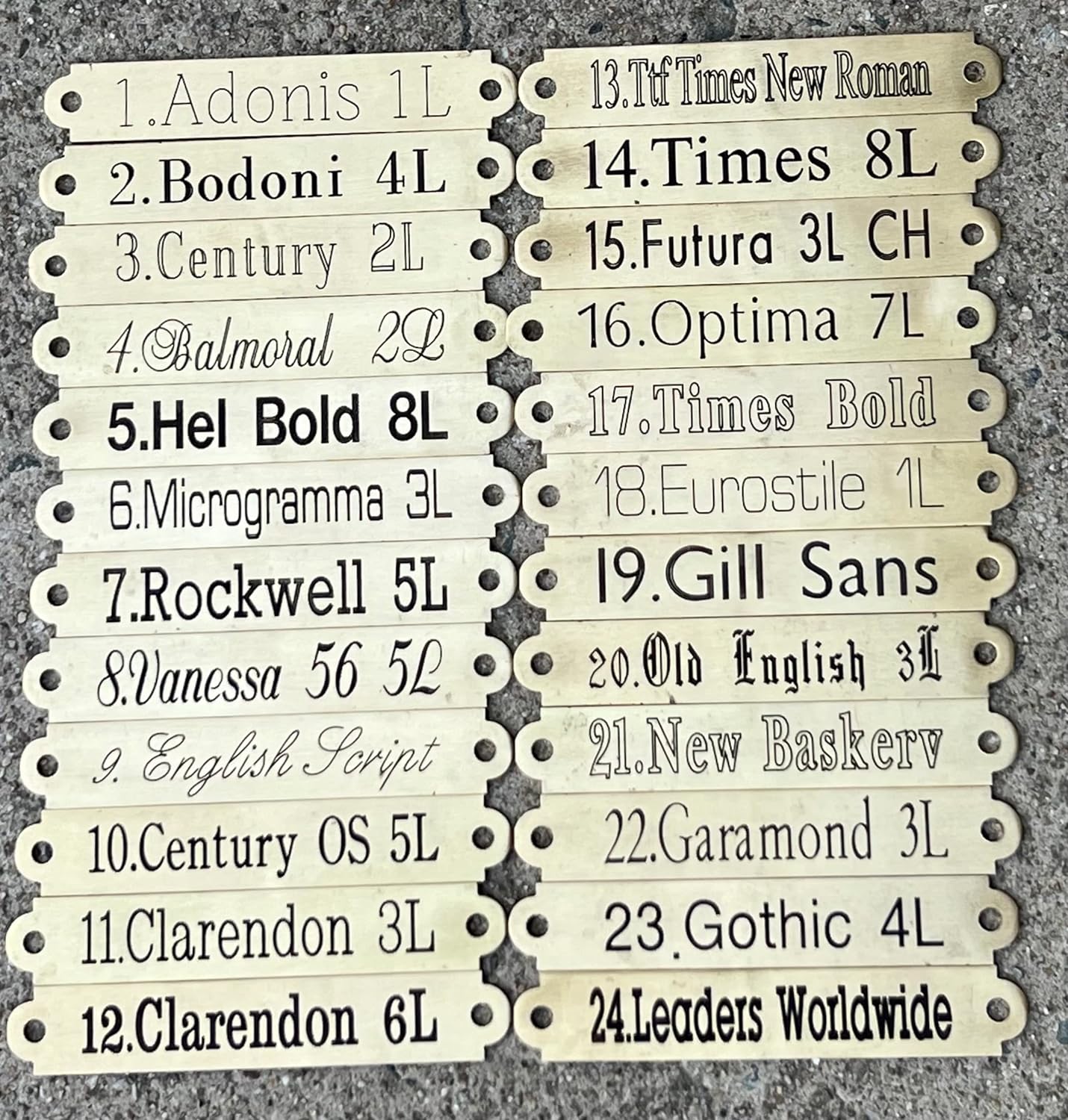 - Please Note - for font ,#4 (Balmoral) #8 (Vanessa) or #9 (English Script) it is highly reccomended to not use ALL capital letters
