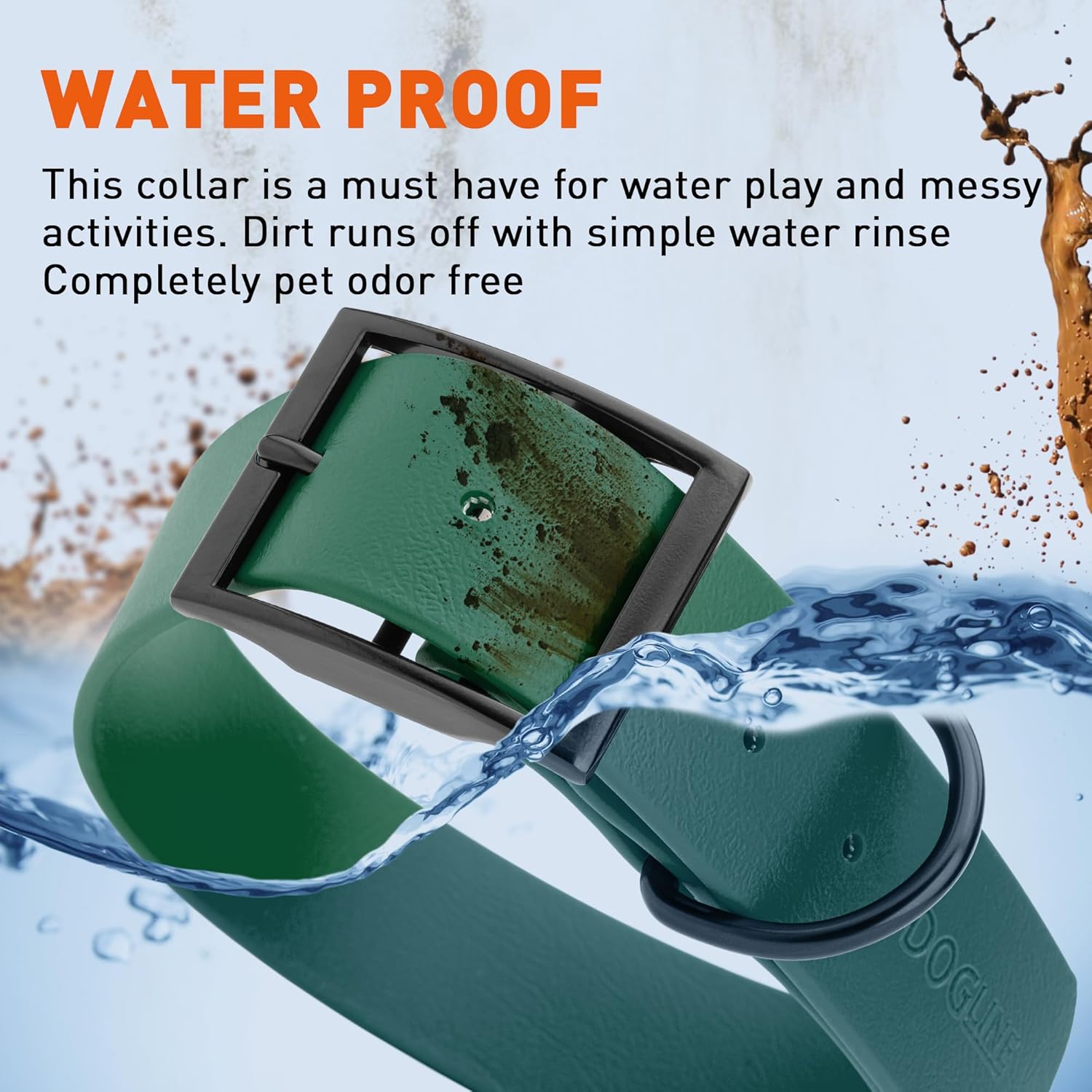 Dogline Biothane Waterproof Dog Collar Strong Coated Nylon Webbing with Black Hardware Odor- Proof for Easy Care Easy to Clean High Performance Fits Small Medium or Large Dogs, Hunter Green