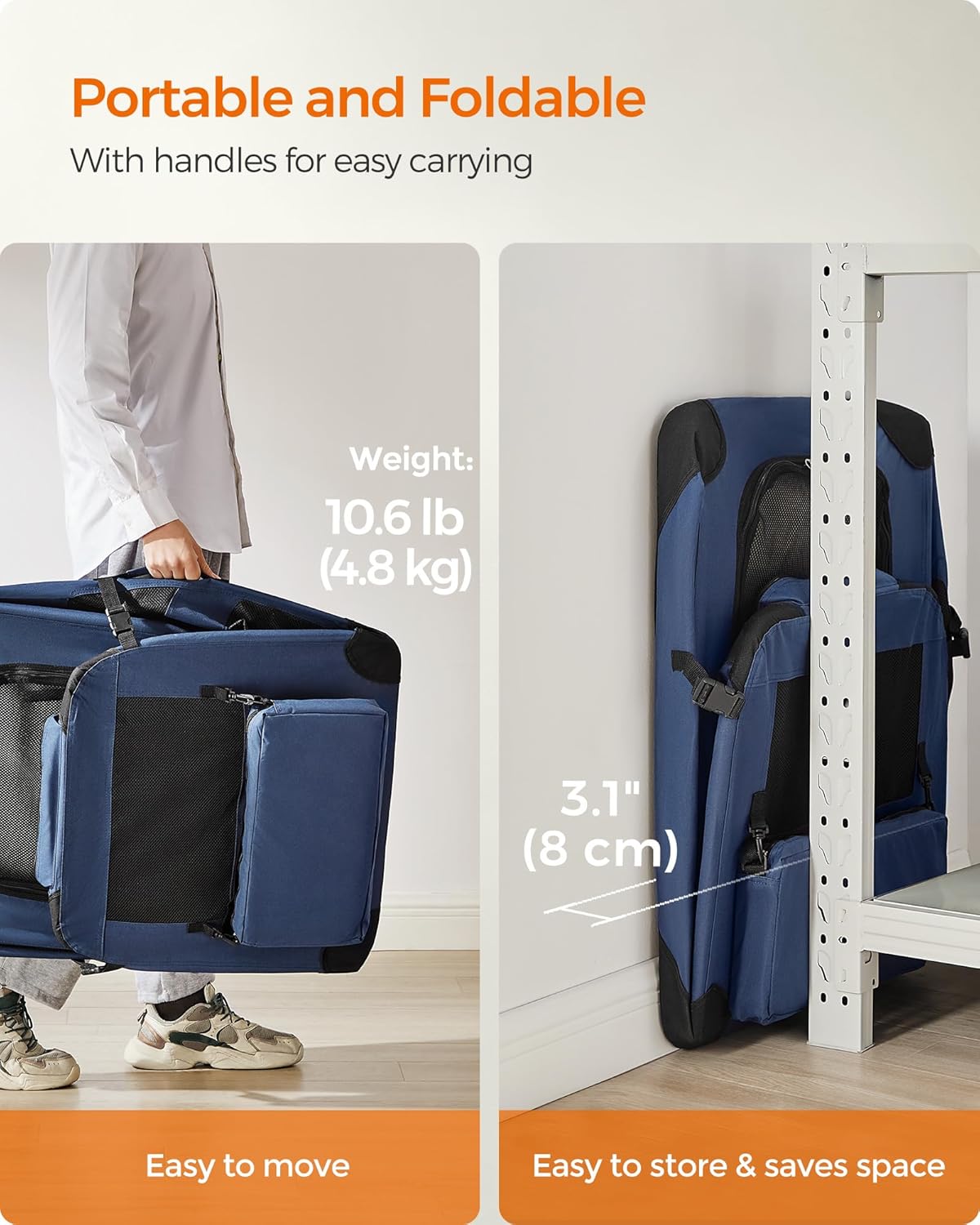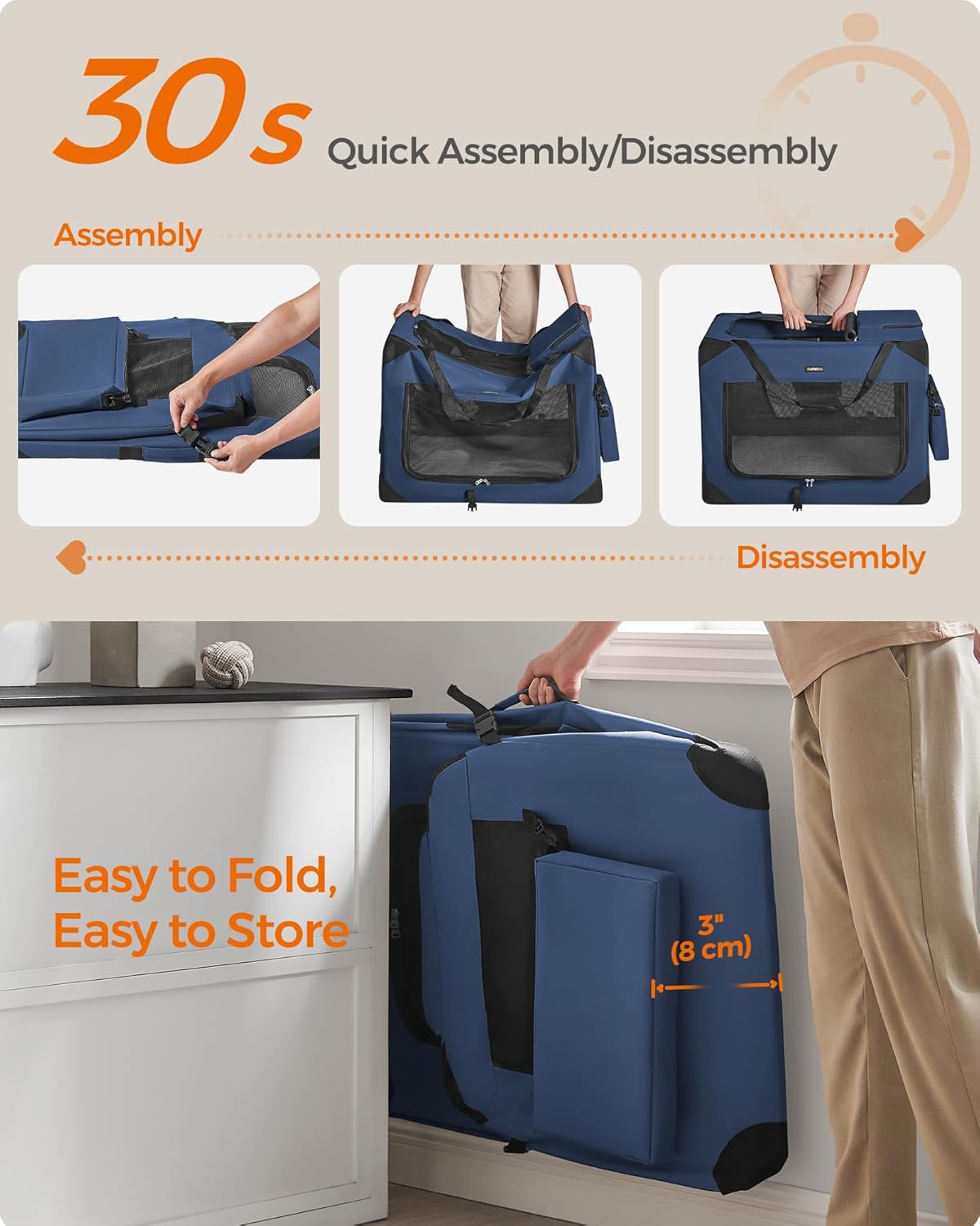 Feandrea 36 Inches Collapsible Soft Dog Crate, Portable Travel Dog Crate for Indoor and Outdoor Use, Dog Carrier Kennel with Safety Zippers, for Living Room, Car, Travelling, Campin, Dark Blue UPDC90Z