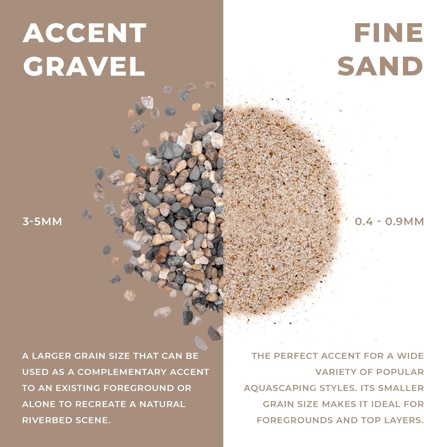- [Fine-grained Substrate] Our fine-grained Mojave sand is a mixture of richer colors, producing a warmer tone. This fish tank substrate also works in blackwater aquariums, biotopes or planted tanks that feature Dragon Stone or aquarium driftwood.