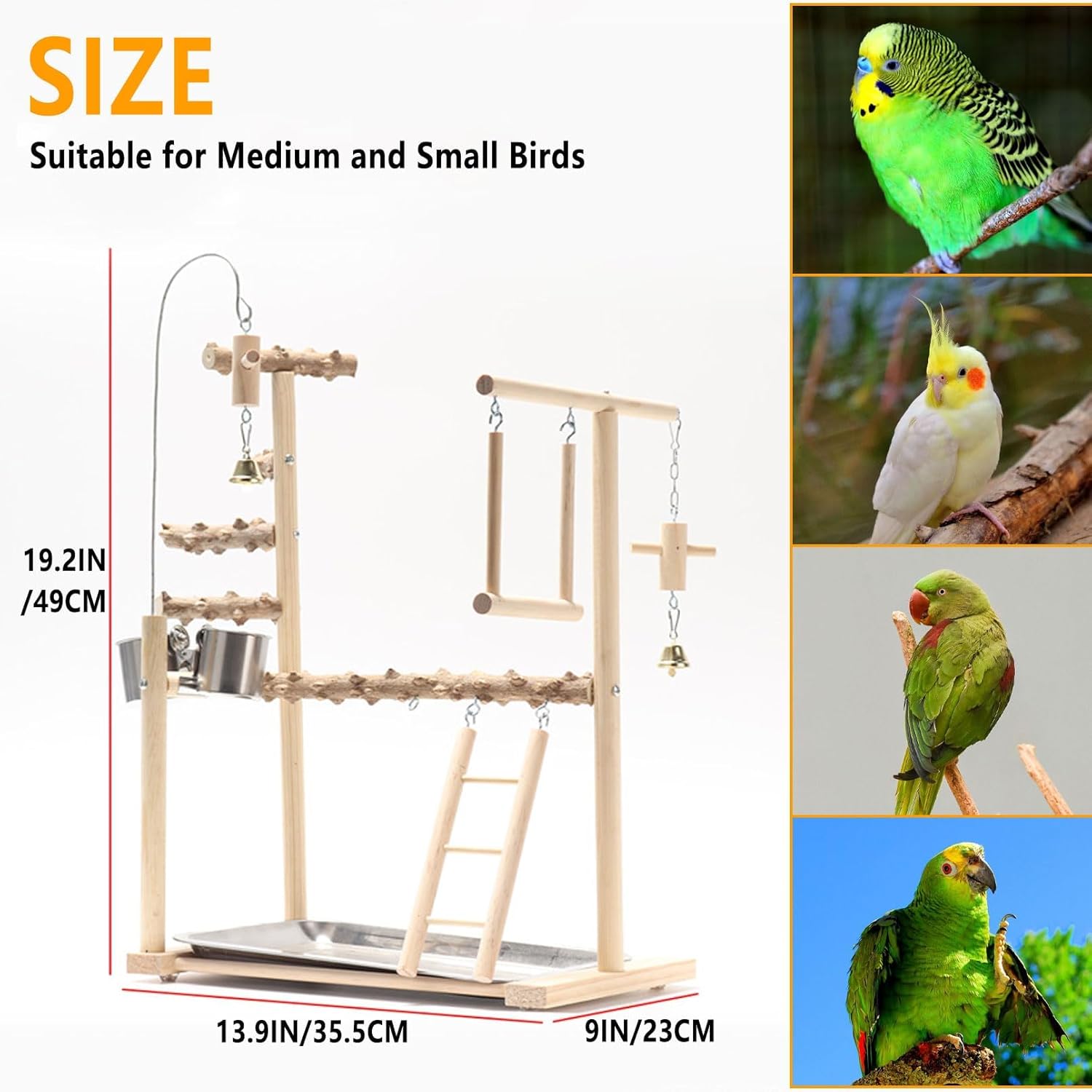 - ăSuitable for Various Bird Speciesă: Measuring at 13.9"x9"x19.2", the assembled parakeet playground is suitable for small and medium-sized birds such as parrots, parakeets, cockatiels, lovebirds, conures, budgies.