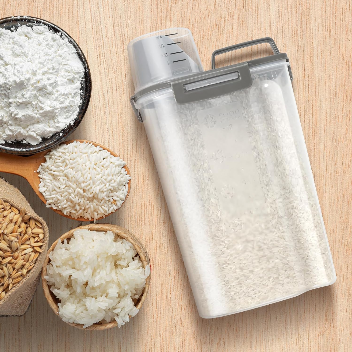 - MESS-FREE FOOD DISPENSER: The rice storage container features a pouring spout makes it a breeze to dispense your ingredients. Its ergonomic design offers a comfortable grip for easy, single-handed pouring