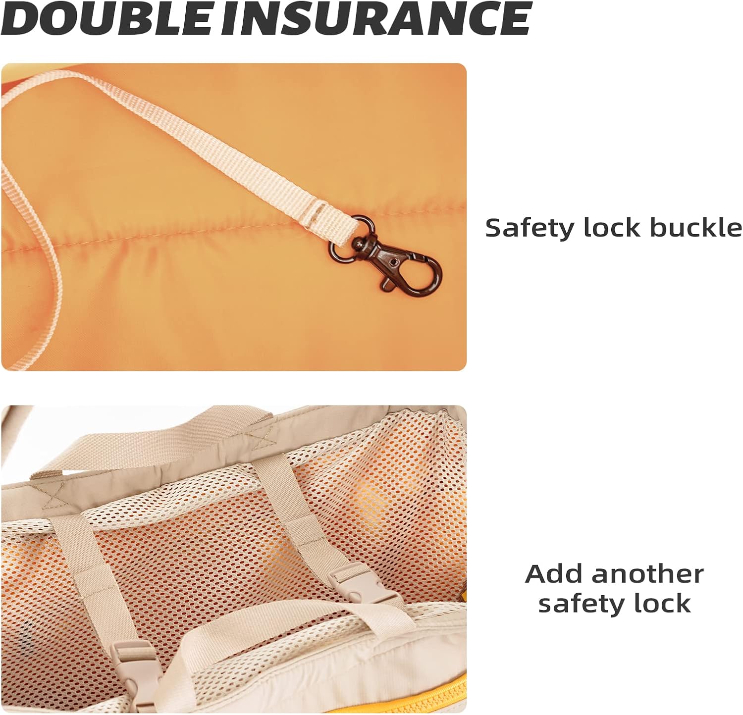 - 【Double escape-proof design:】The pet carrier's zipper features an anti-escape design, which allows it to be easily opened only when the zipper pull is at a 90-degree angle to the zipper teeth. It becomes very difficult to open when the zipper pull is parallel to the zipper teeth. Additionally, there is a safety strap design that can be attached to your pet's chest or collar to prevent escape attempts.