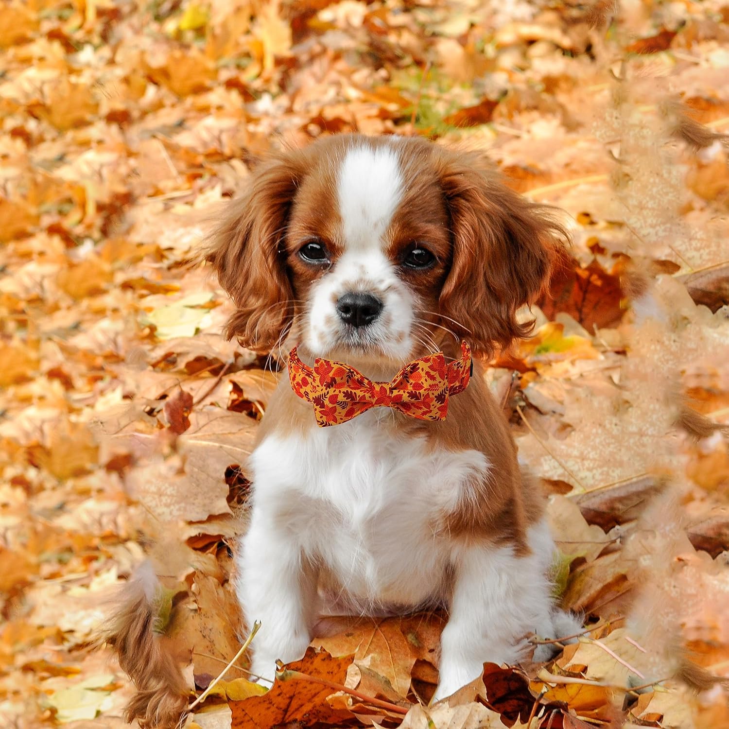 Lionet Paws Dog Collar with Bowtie - Cute Cotton Adjustable Fall Bowtie Dog Collar with Metal Buckle for Small Medium Large Dog Girl Boy Gift, XS, Neck 7-11in
