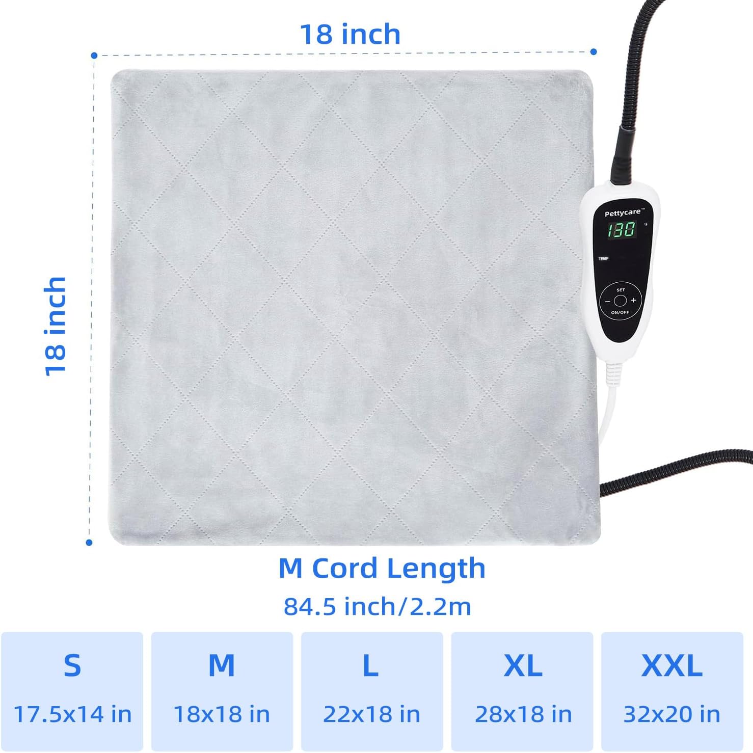 pettycare Pet Heating Pad for Dog Cat, Electric Heating with Steel-Wrapped Cord, 25-Level Timer & 11-Level Temperature Indoor Warming Pads Easy Clean for Puppy Cat Dog M 18x18inch