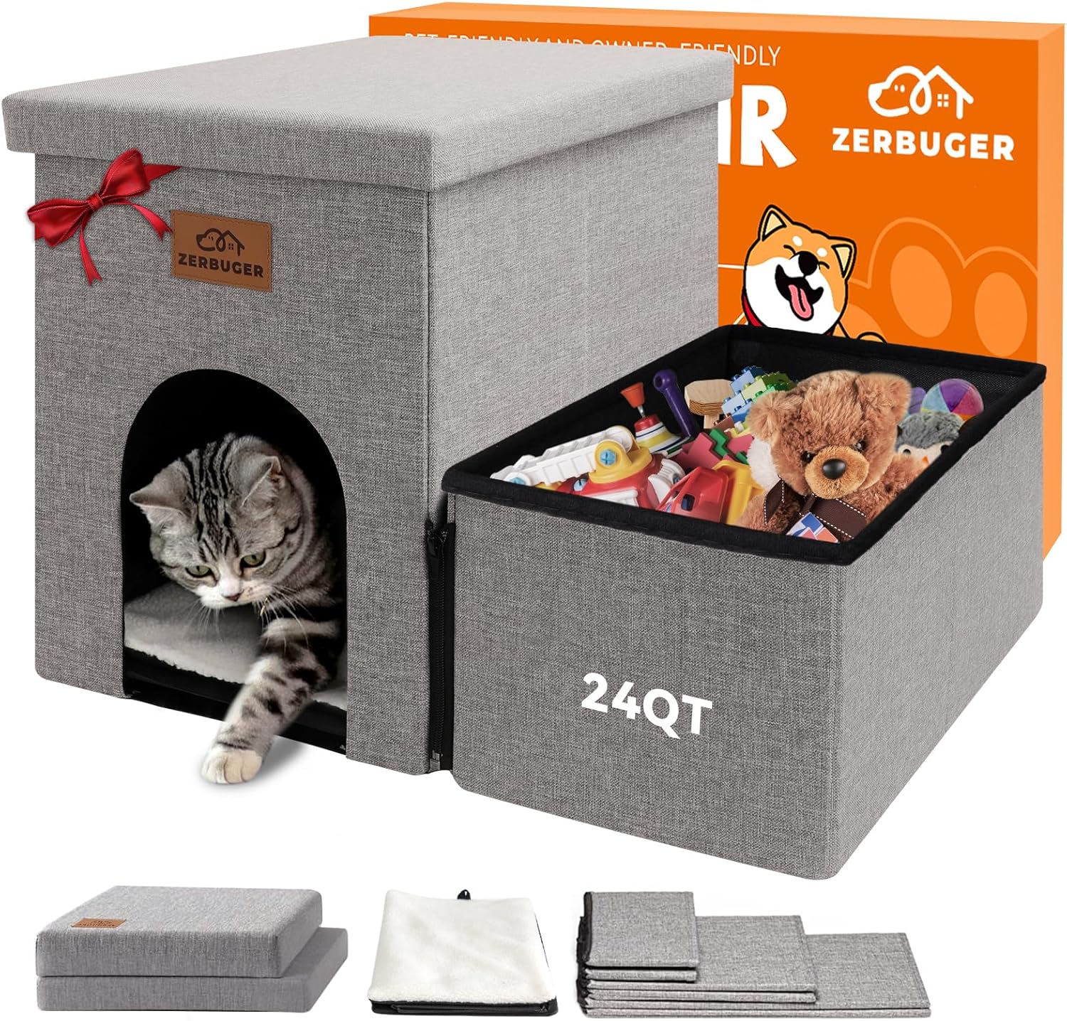 - 3-IN-1 DOG STAIRS AND CONDO: Zerbuger pet stairs not only provide a stable and cozy place for your pet to rest, but also serve as a convenient 24QT large storage area for your pet's clothes, toys, or any other supplies. Our pet steps are covered with removable lids, Every steps are designed as storage boxes.