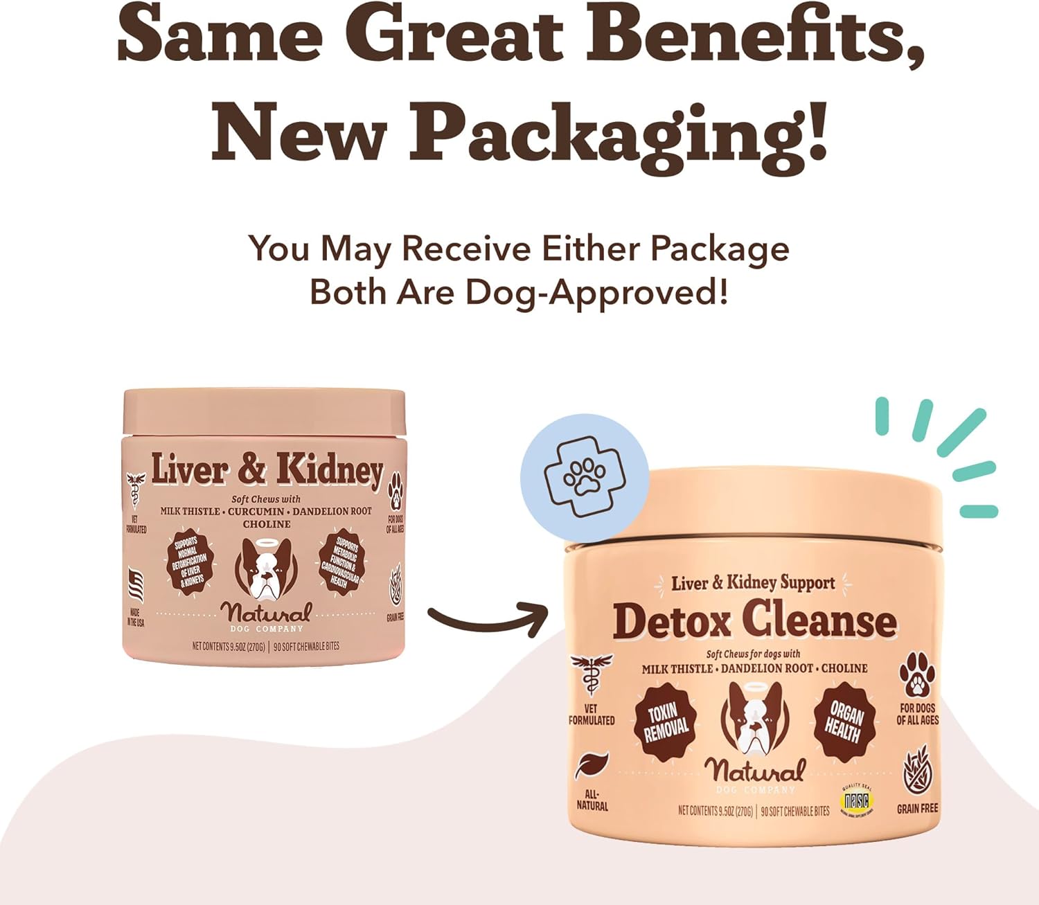 Natural Dog Company Liver & Kidney Supplement for Dogs – 90 Soft Chews with Milk Thistle, Cranberry, Dandelion Root, Turmeric & Astragalus – Supports Liver Function, Kidney Health & Overall Wellness