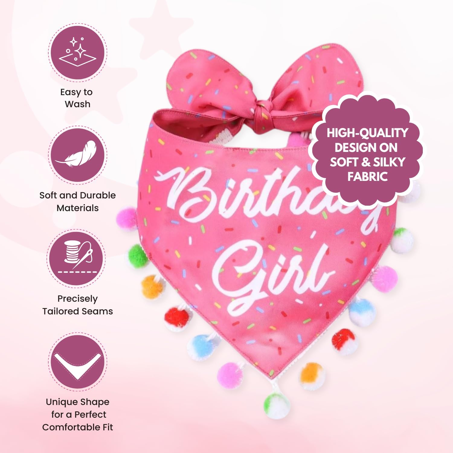 LunaMarie - Luxury Pet Birthday Bandanas -Premium & Silky Poly Fabric | 100% Handmade | Custom Shape Dual Layered (Birthday Girl, Small)