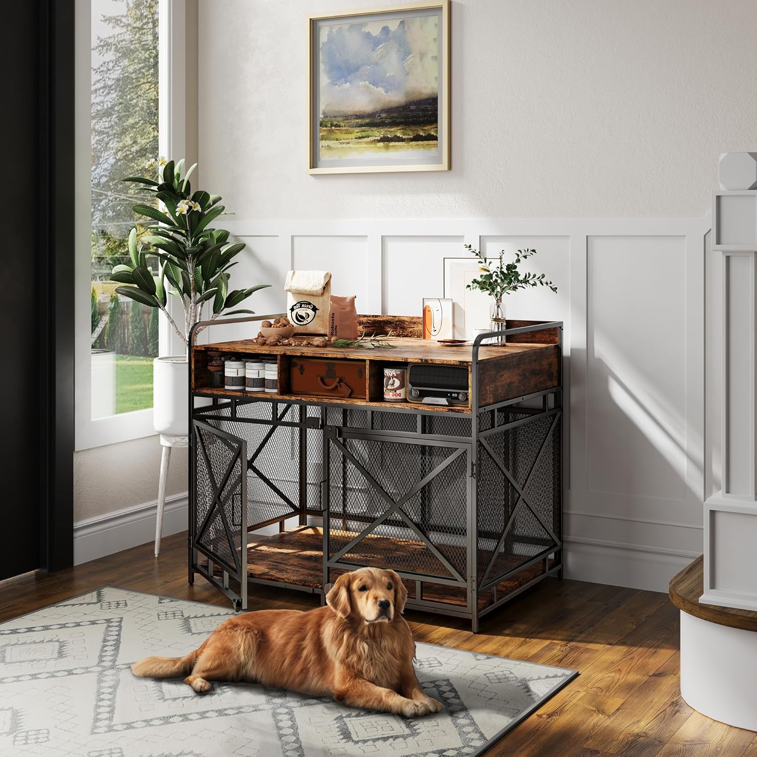 - Spacious & Secure Dog Crate for Large Dogs: The extra large dog crate has generous dimensions of 43"L x 28"W x 36"H. Ideal for one large dog or two smaller dogs, this large dog kennel furniture indoor ensures ample space for them to stretch out comfortably. Before purchase, be sure to measure your dog to guarantee they have enough room to move around, lay down, and sleep comfortably, so this wooden dog crate is perfect for this purpose.