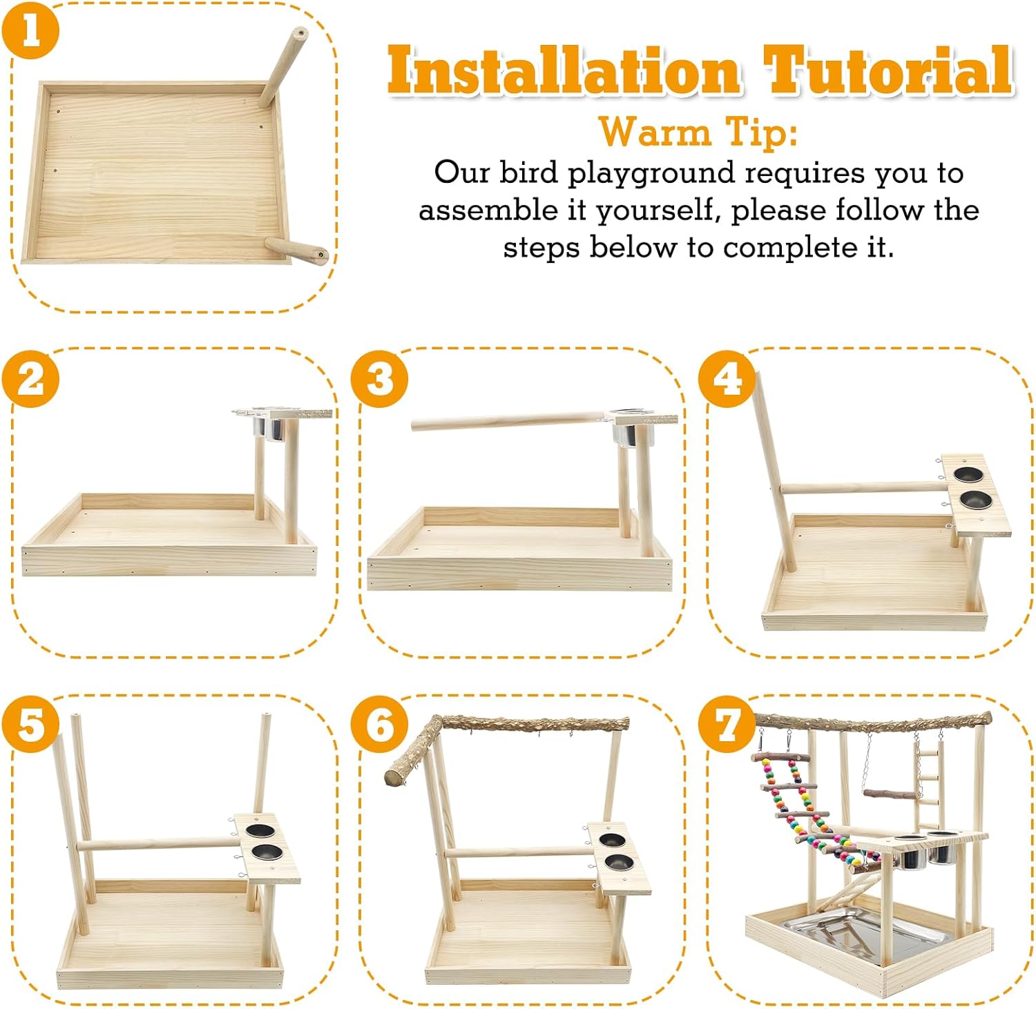 - AWESOME PLAYGYM FOR FUN: Bird play gym parakeet is great fun and provides your bird with a full range of enjoyable experiences. Bird play gym with stand conures provides a comfortable place for your pets to play and exercise, eliminat boredom and improve the level of exercise. Allows your bird to get good climbing training. Offers many perching areas and ladder for additional bird play area budgie exercise opportunities
