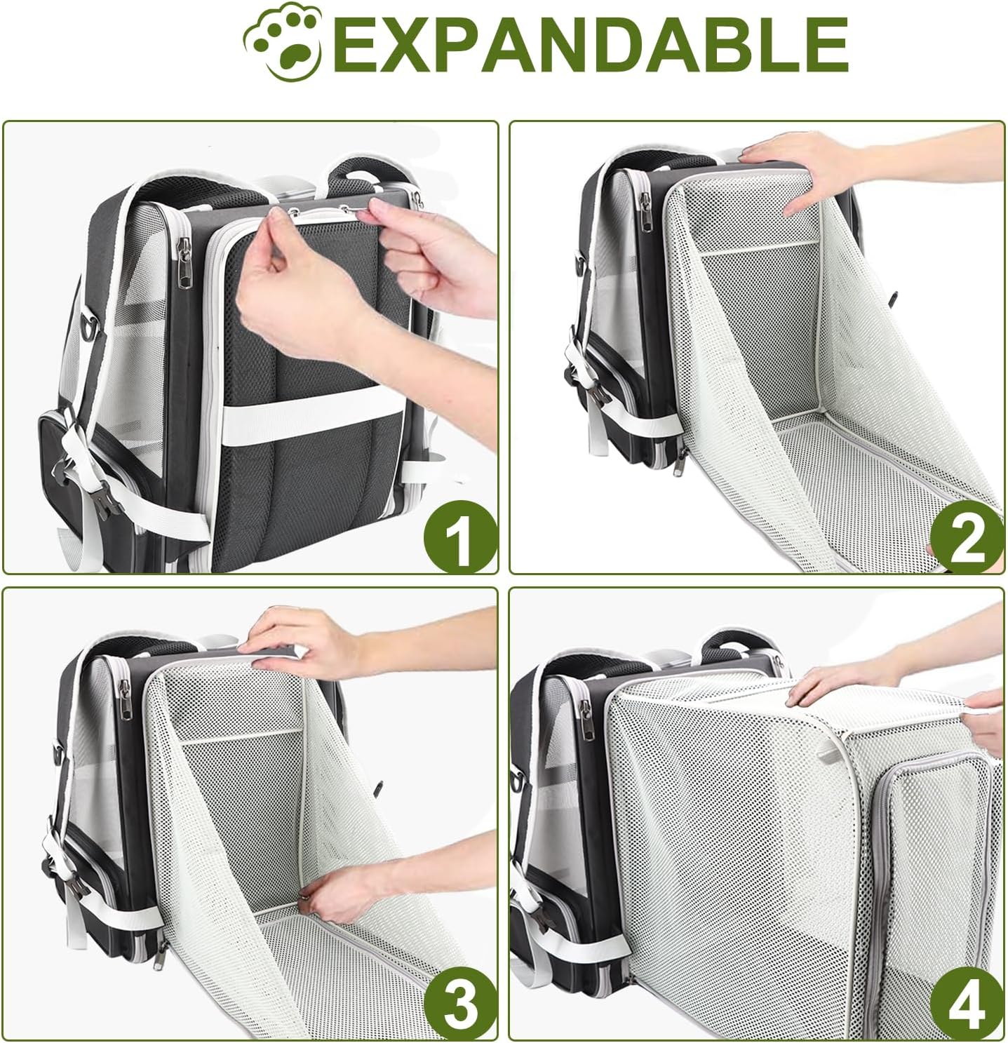 - 【Expandable for More Space】Expanded size: 13.8"L x 9.3"W x 14.2"H. This cat carrier with an expandable back design provides additional space and enhanced air circulation, allowing your pet a more comfortable and relaxed environment and reducing anxiety. The real ever bigger expandable cat backpack.