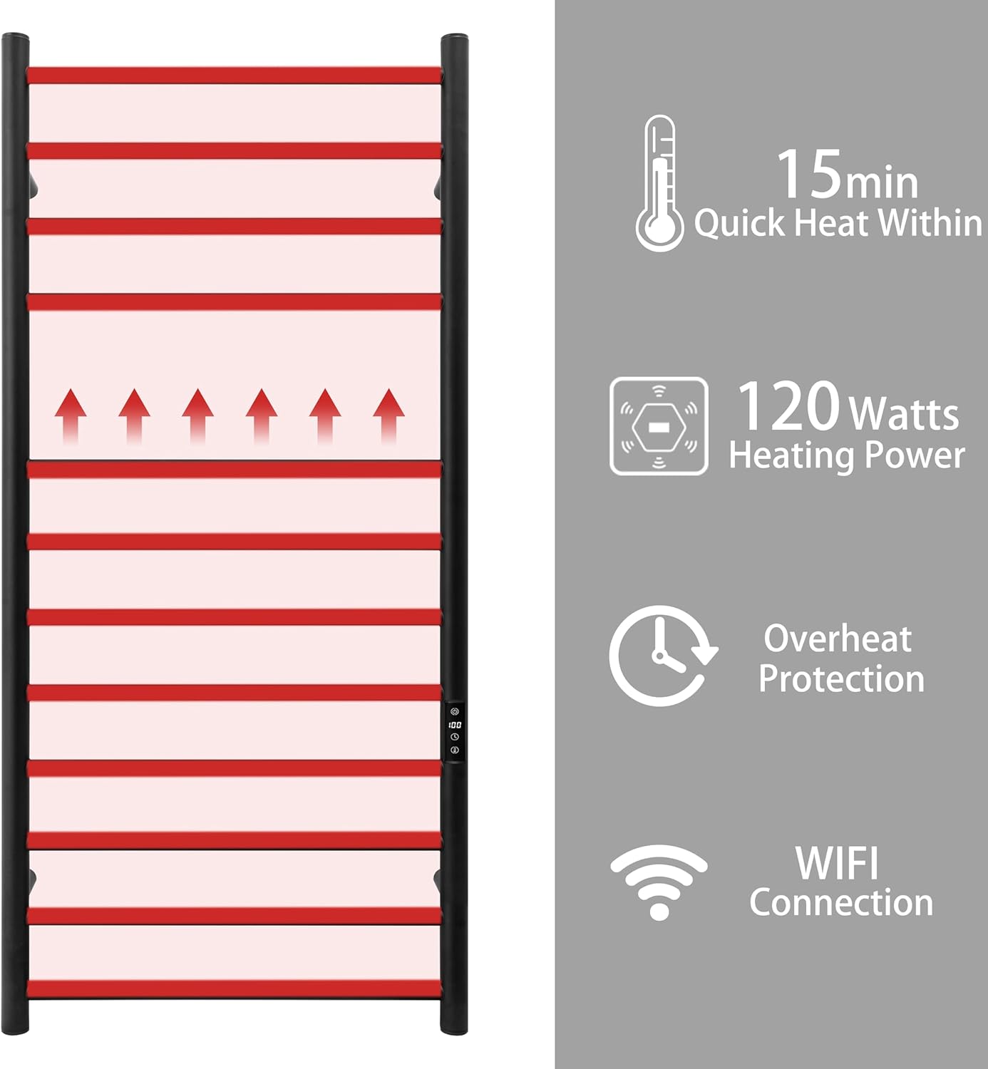 - [PREMIUM QUALITY WITH ELEGANT LOOK]: The bath towel warmer is made of durable 304 stainless steel, easy to clean and durable use. IP56 Waterproof standard and wall-mounted design maximizes your floor space.
