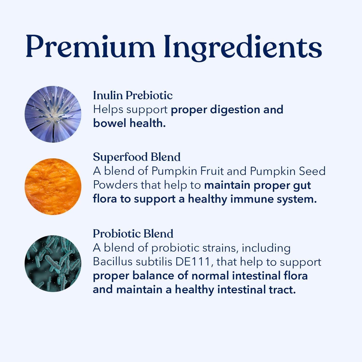 - Immune System Support - Contains ingredients like Bacillus Subtilis DE111 known to support a healthy immune system in dogs.