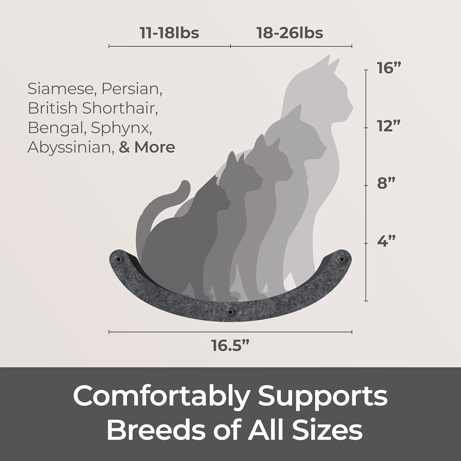 - Effortless Paradise: This cat hammock and wall bed includes all installation hardware, allowing your fur-baby to start exploring right away. Our cat climbing shelf securely attaches to concrete, cement, brick, dry wall and more ensuring your catās safety.