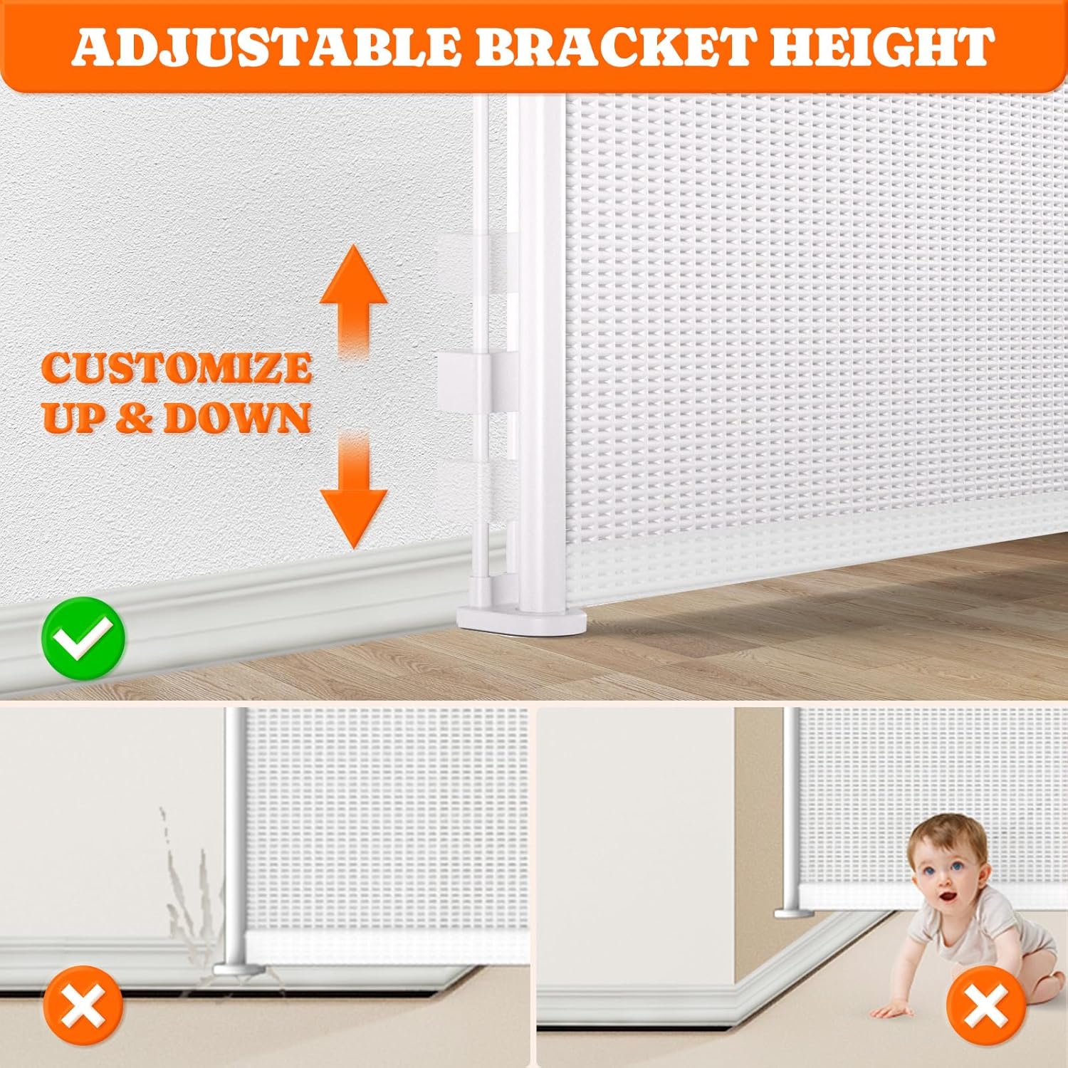 - 200" Extra Wide Retractable Design: Extend our retractable baby gate up to 200" wide, with 41" heightened gates preventing pets from jumping out. Designed to save space, this dog gate is convenient when needed and easily tucked away out of sight when not in use. Note: Please ensure the installation height is above 41" before purchasing