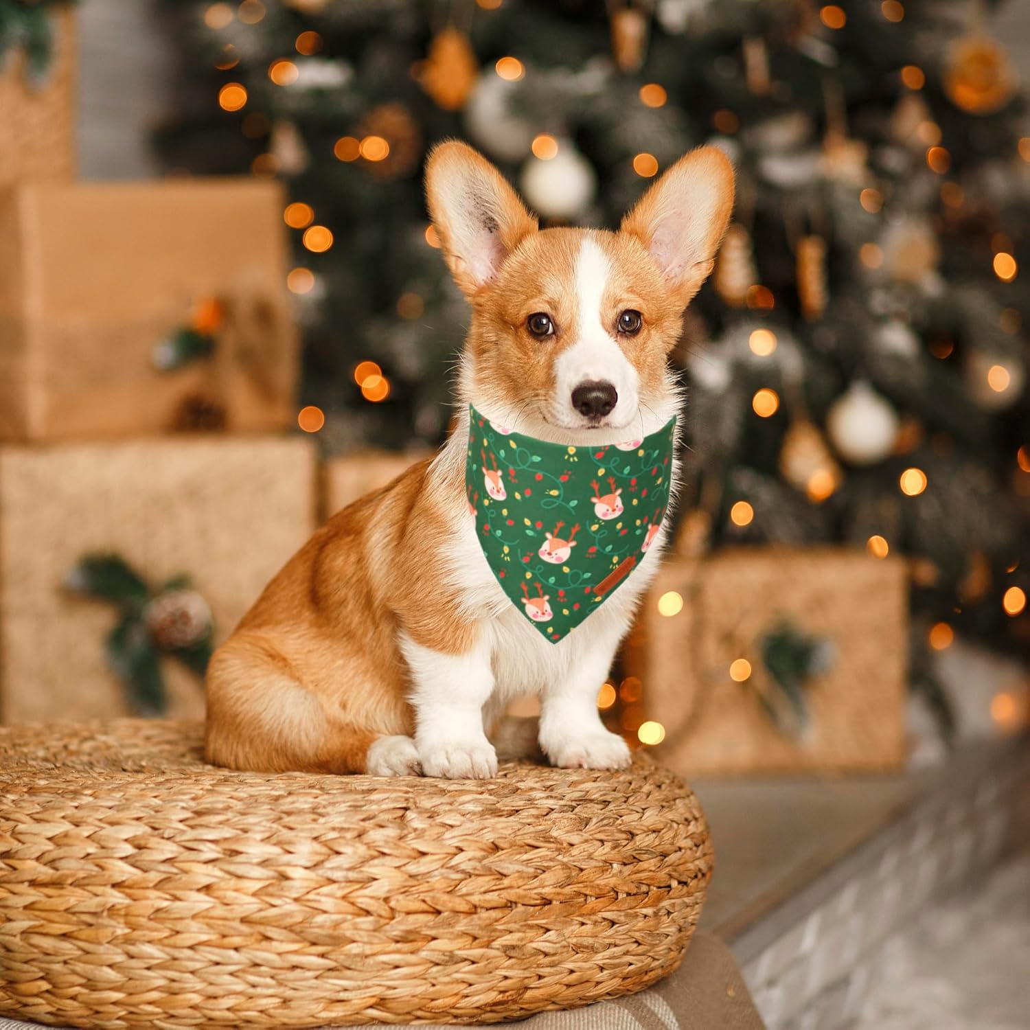 ADOGGYGO Christmas Dog Bandanas 2 Pack, Santa Deer Pattern Pet Xmas Scarf Bib, Premium Durable Fabric, Pet Christmas Bandanas for Medium Large Dogs (Large)