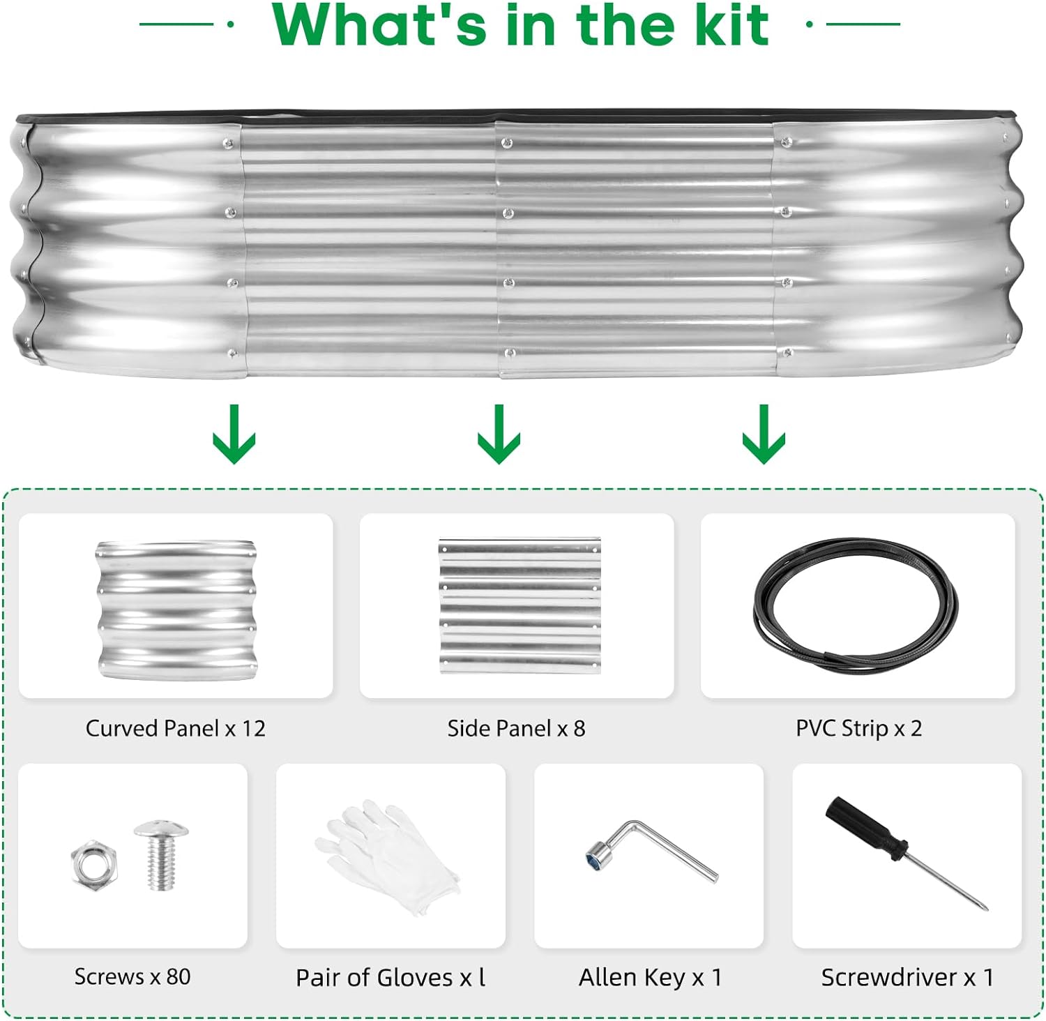 - What You Get: we have included Galvanized raised garden bed kit with detailed assembly instructions, rubber edge strips, safety gloves , wrench tools and with galvanized nuts and bolts in the box .These essential tools elevate your overall planting and gardening adventure.