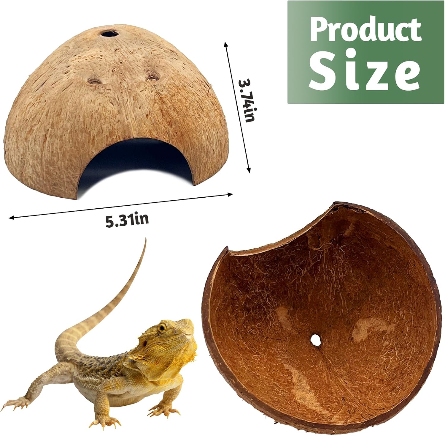 - Product Size: The large space of this coconut hide (5.31 x 3.74 inches) provides a cozy and warm environment for your snake leopard gecko hermit crab tortoise crested gecko