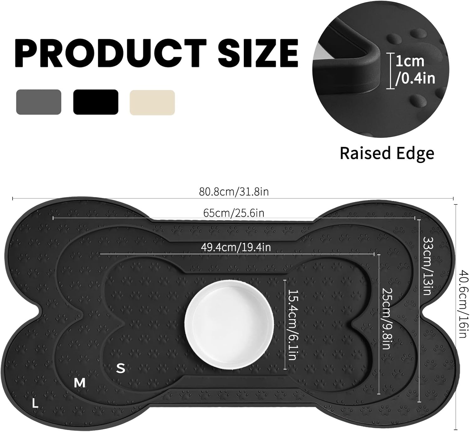 - Health Silicone Material - This pet bowl mat is non-toxic, and non-allergenic, protecting the health and safety of your pet's feeding. 25.6" x 13" holds two regular big bowls, perfect for medium to large-sized dogs and cats to enjoy a delicious meal tray.