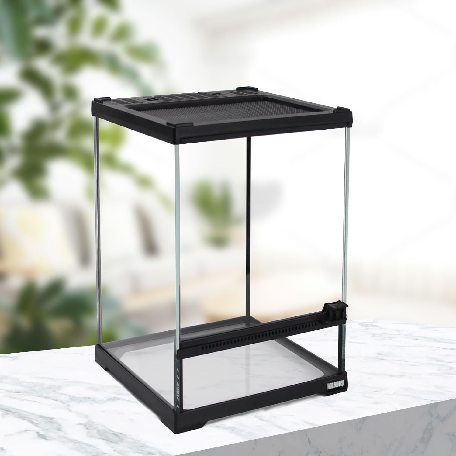 - 【360° Panoramic Vision】: The size of this reptile tank is 8"x8"x10", and it is made of all-ultra-white glass, so that you can see your small animal's activities and physical conditions from all angles.