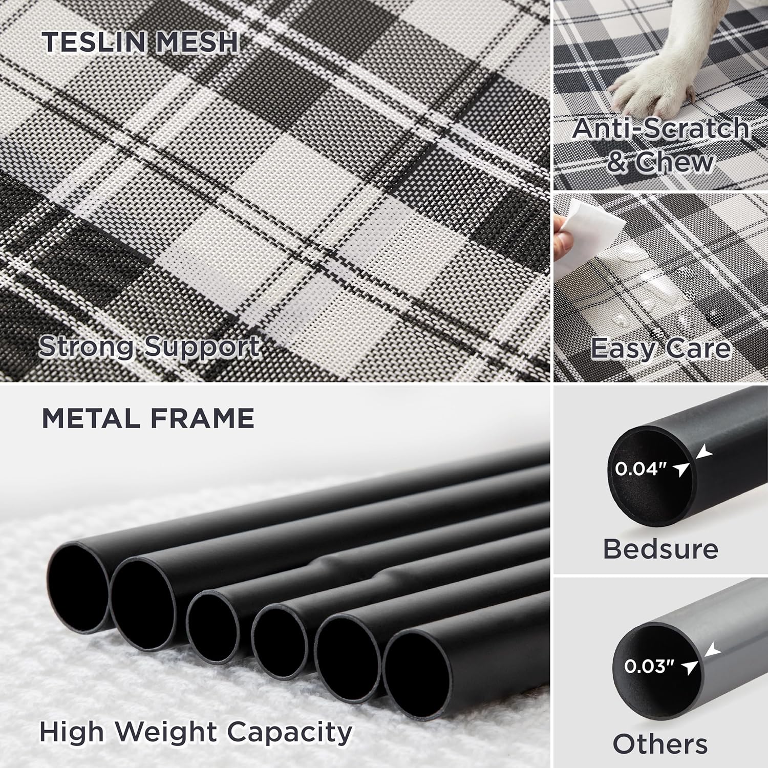 Bedsure Outdoor Elevated Dog Bed Large Sized Dog, Portable Indoor & Outdoor Cooling Raised Cot Pet Hammock Bed with Skid-Resistant Feet, Frame with Breathable Mesh, Checkered White, 49 inches