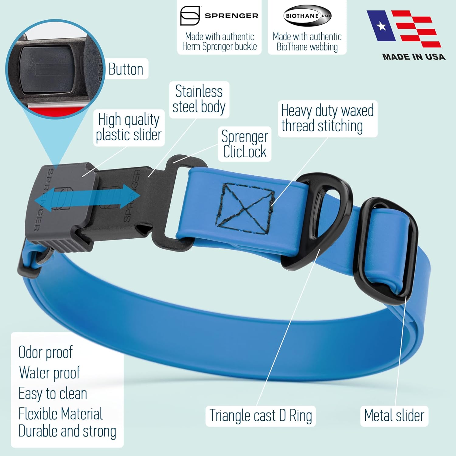 Dogline Biothane Waterproof Dog Collar with Herm Sprenger Stainless Steel Quick Release Buckle – Heavy Duty Tactical Durable Collar for Dogs – Comfortable and Safe Pet Collar, W 1" L 15-25", Blue