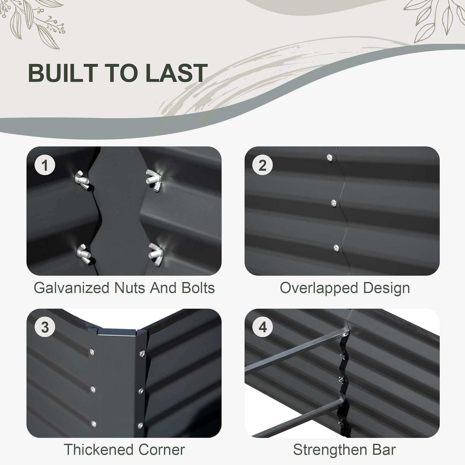 - Thicker Material: Made of thick galvanized steel plate with eco-friendly coating, rust-proof and durable. The 0.8mm thickness, reaching 1.8mm in the thickest part, ensures long-lasting raised garden beds' outdoor aesthetics.