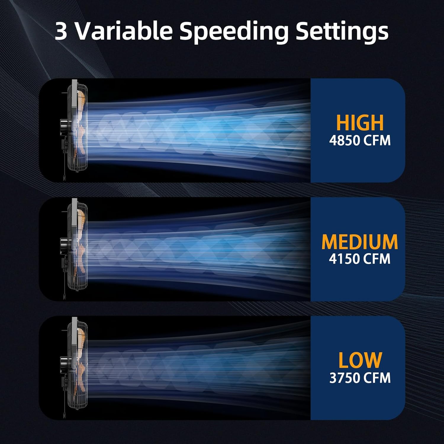 - 3 VARIABLE SPEED SETTINGS - The AIRWIZARD 20-Inch industrial wall fan has 3 speed settings, HIGH / MEDIUM / LOW - 4850 / 4150 / 3750 CFM, offers you the freedom to select from three different speed options, allowing you to optimize the airflow based on your specific needs. Whether you require a gentle breeze or a powerful gust of air, this fan has you covered.