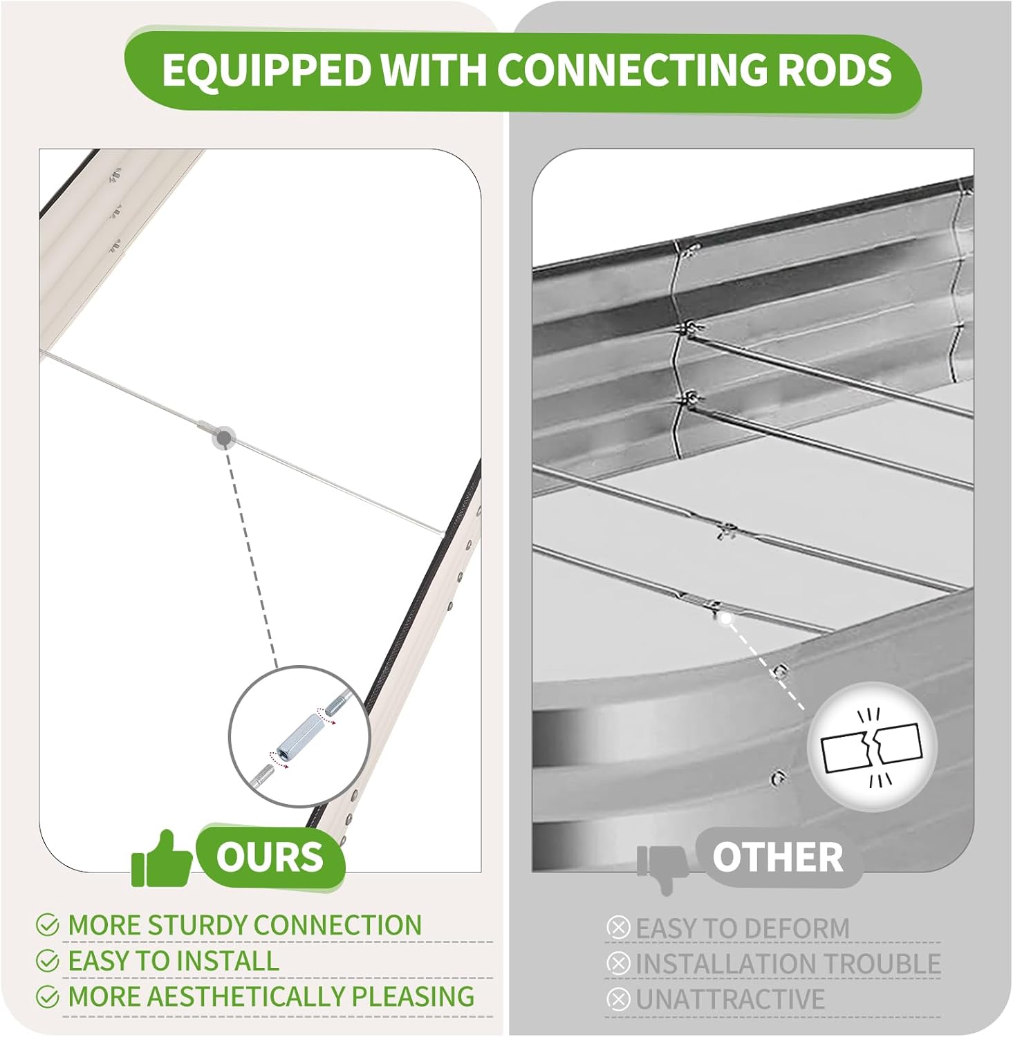 - 【Double Reinforced Connecting Rods】The 8x2x1FT large raised beds for gardening provide enough space to grow the vegetables you want. There are two rotating support rods in the middle, There are two rotating support rods in the middle, which are easy to install and used to reinforce and stabilize your plant box