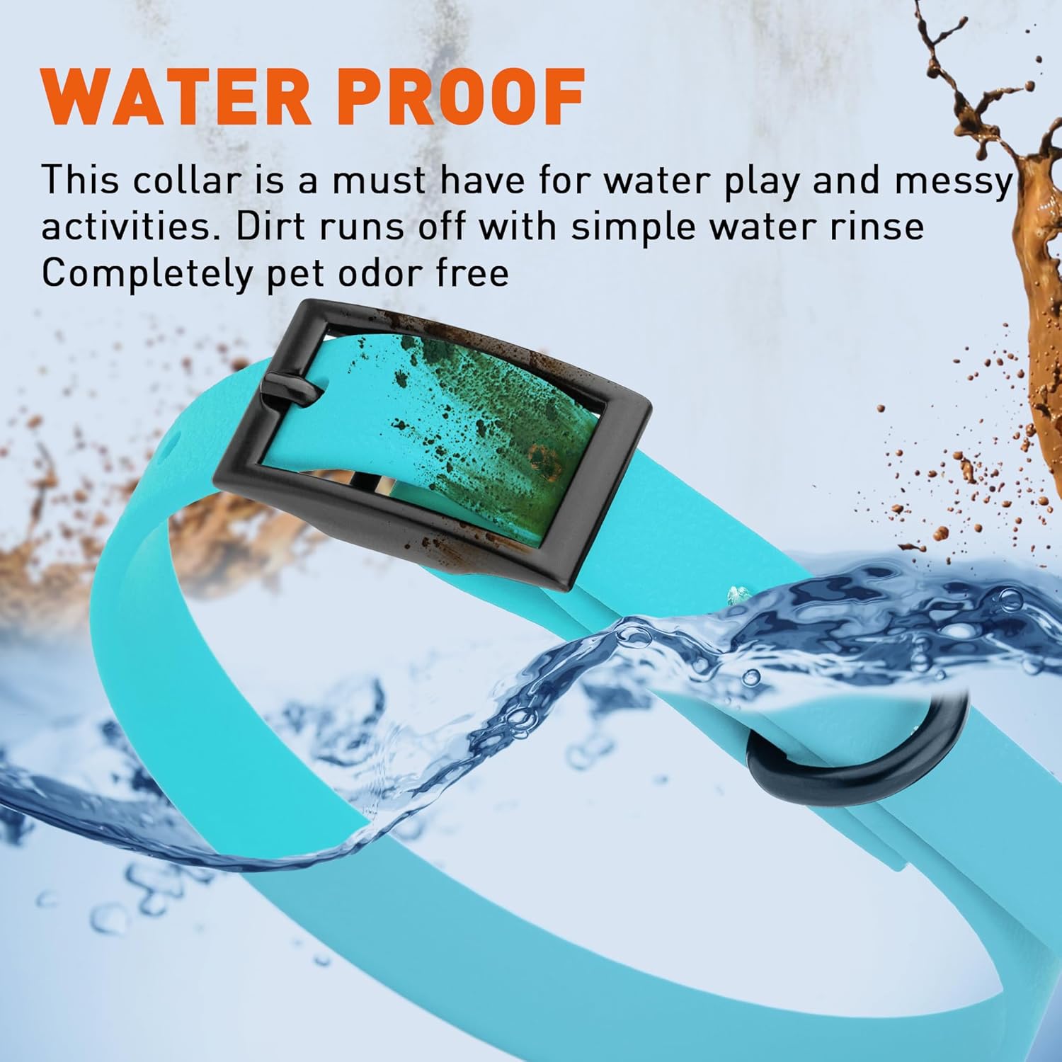 Dogline Biothane Waterproof Dog Collar Strong Coated Nylon Webbing with Black Hardware Odor- Proof for Easy Care Easy to Clean High Performance Fits Small Medium or Large Dogs, Sky Blue
