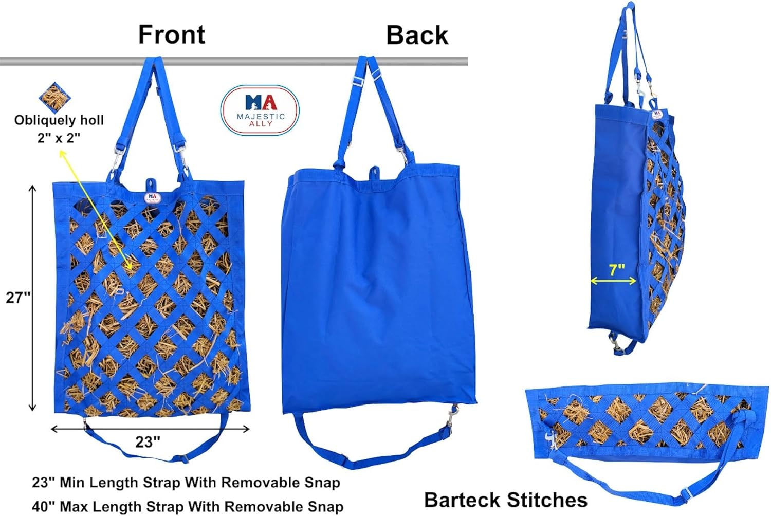 Majestic Ally Premium Nylon Hay Bag for Horses and Livestock, Simulates Grazing, Slow Feeding, Heavy-Duty PP Webbing,Quick-Adjust Straps, Small Hole for Digestion, Multiple Colors (Turquoise)