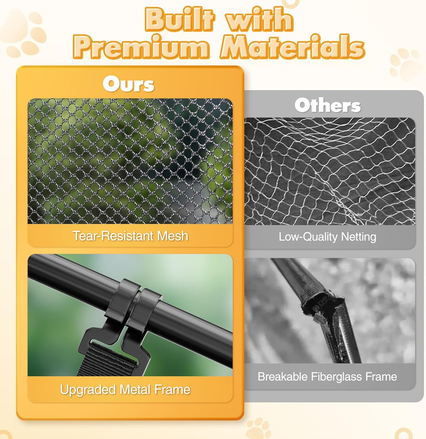 - đ˝ăBetter Materials for Greater StabilityăAs a cat owner, I know how important it is to give our feline friends a safe and secure space. Thatâs why the Rywell catio outdoor cat enclosure is crafted from high-quality, rust-resistant steel and ultra-fine mesh. Itâs built to withstand your catâs claws and teeth while keeping them safe from predators and bugs. The reinforced corners and protected seams ensure long-lasting stability, so you can relax knowing your cats are protected.
