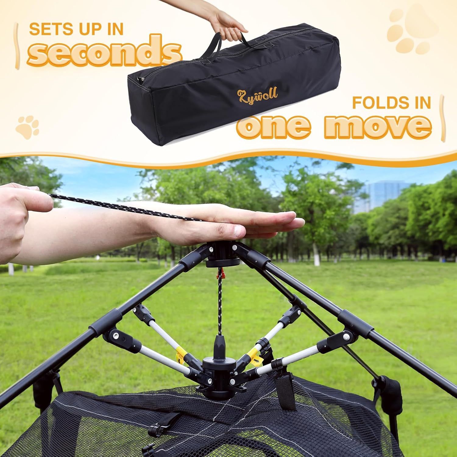 - đ˝ăAssembly couldnât be simplerăOnce out of the packaging, simply undo the ties then pull the top string and press down firmly until it snaps into place, then follow the instruction to install the rest-just like a camping tent! Suggest pegging down the corners so the shelves are tighter for easy to jump from one level to other. It comes with a travel pouch for easy storage and movement. This catio cat tent fits easily into the back of a truck or SUV so your kitty can supervise as you set up camp.