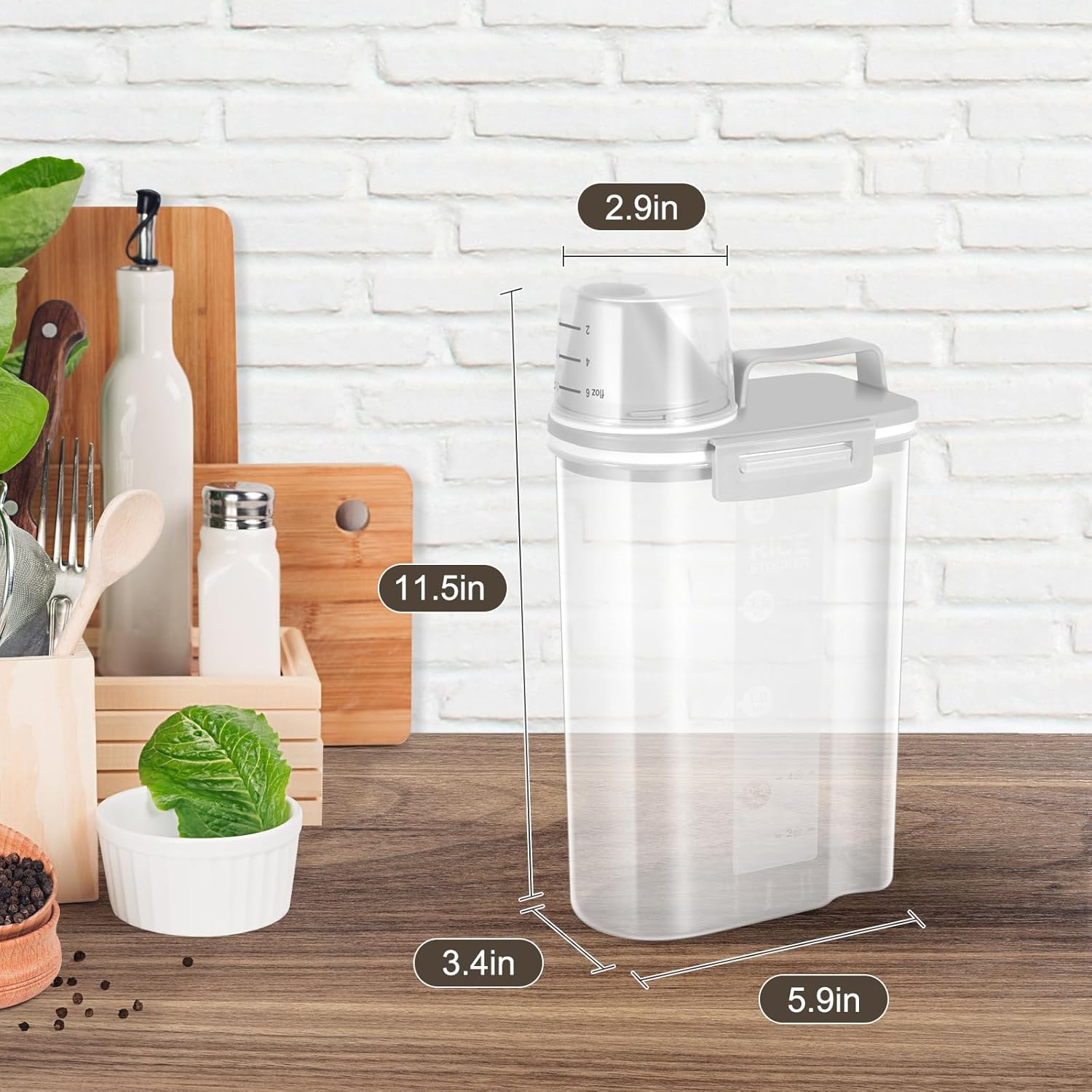 TBMax Rice Storage container 4 Lbs, Small Rice Dispenser with Measuring Cup, Grey Cereal Containers Flour Bin, Kitchen Food Storage Container and Pantry Organizers, Pet Dog Cat Food Dispenser