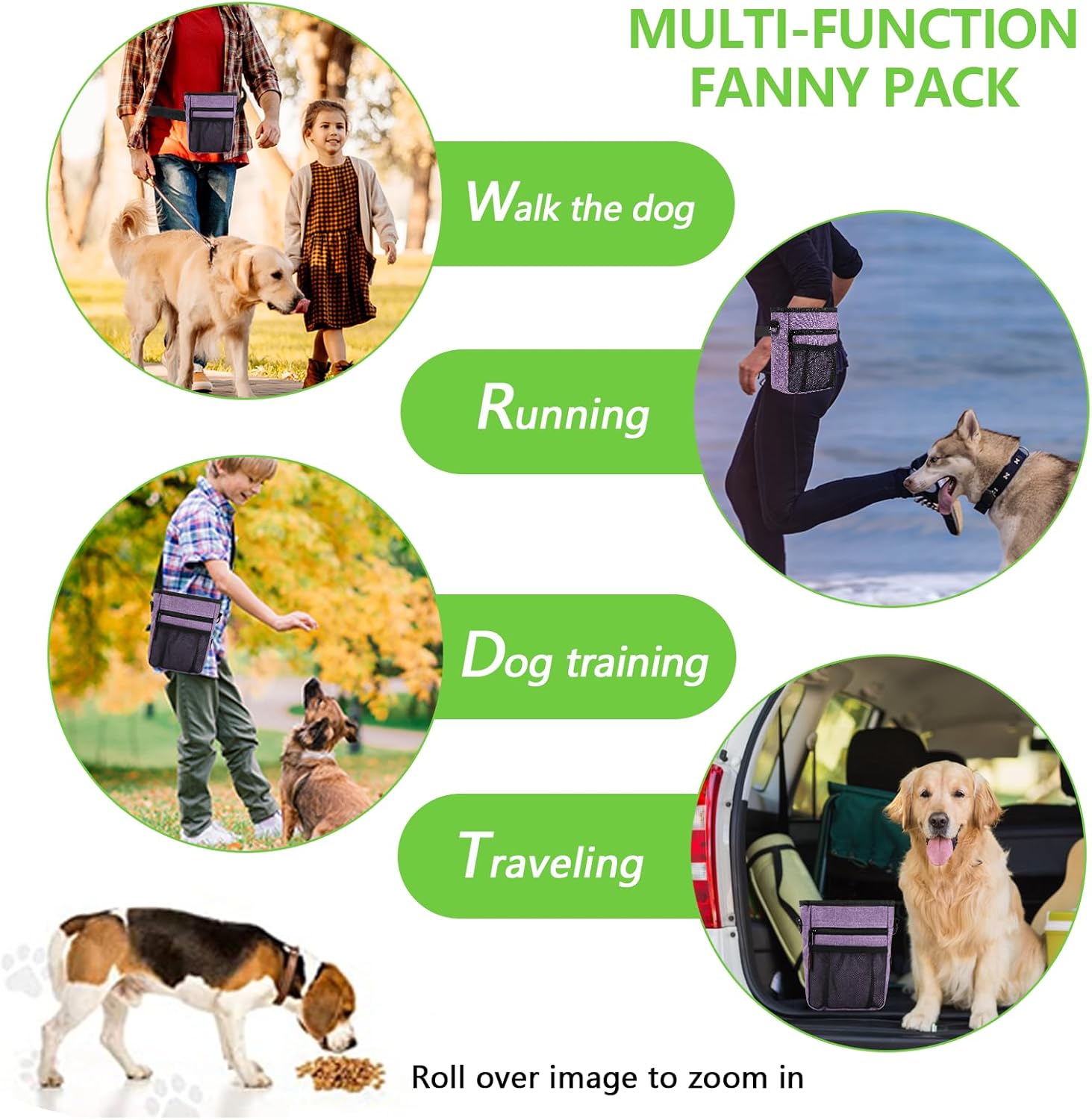 Dog Treat Pouches for Pet Training with Magnetic Closure Treat Pouches for Pet Training,Large Dog Treat Training Pouch and Dog Clicker,Training Treat Pouch Built-In Poop Bag Dispenser-Purple.