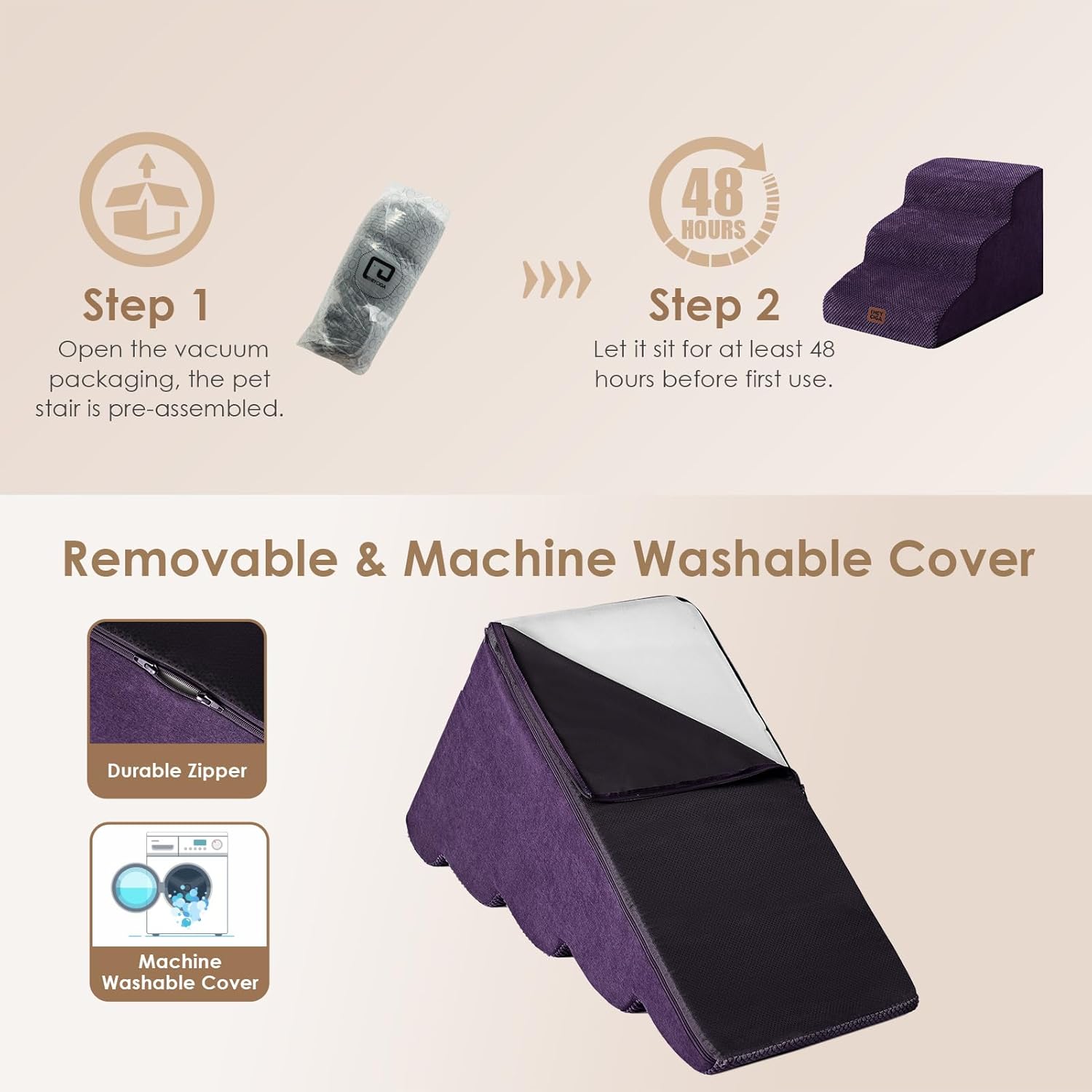 - EASY TO CLEAN - The dog step has a removable washable cover made of bonded fleece that can be hand washed or machine washed, so you don't require spending a lot of time cleaning it. It's very convenient.