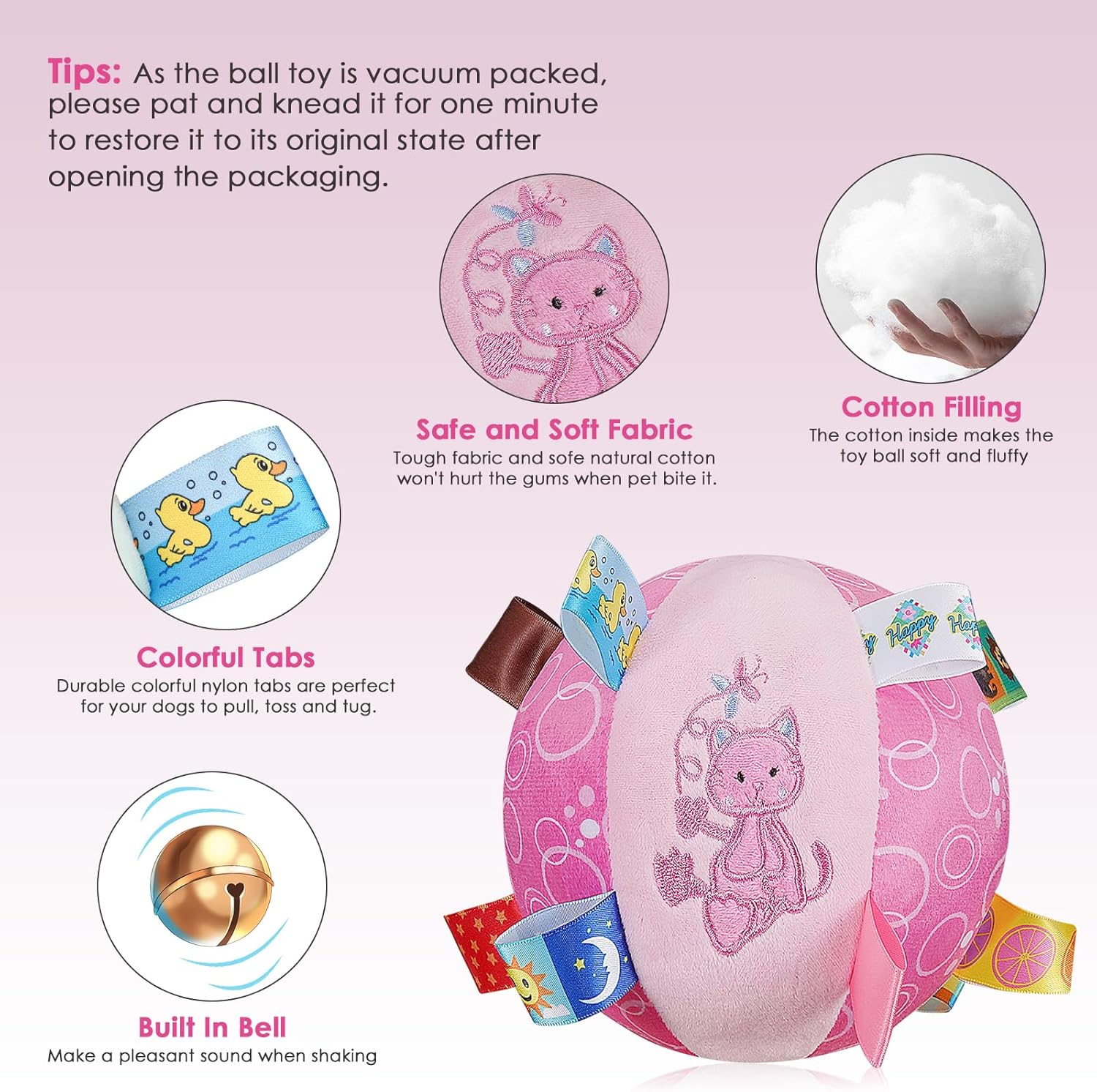 - Interactive Squeaker Toy: Each stuffed dog ball toy is equipped with a built-in bell that produces a pleasant sound when shaked, enticing dogs to engage and play. Each ball has 15 colored tags on it, making it easy for you to interact with your dog.