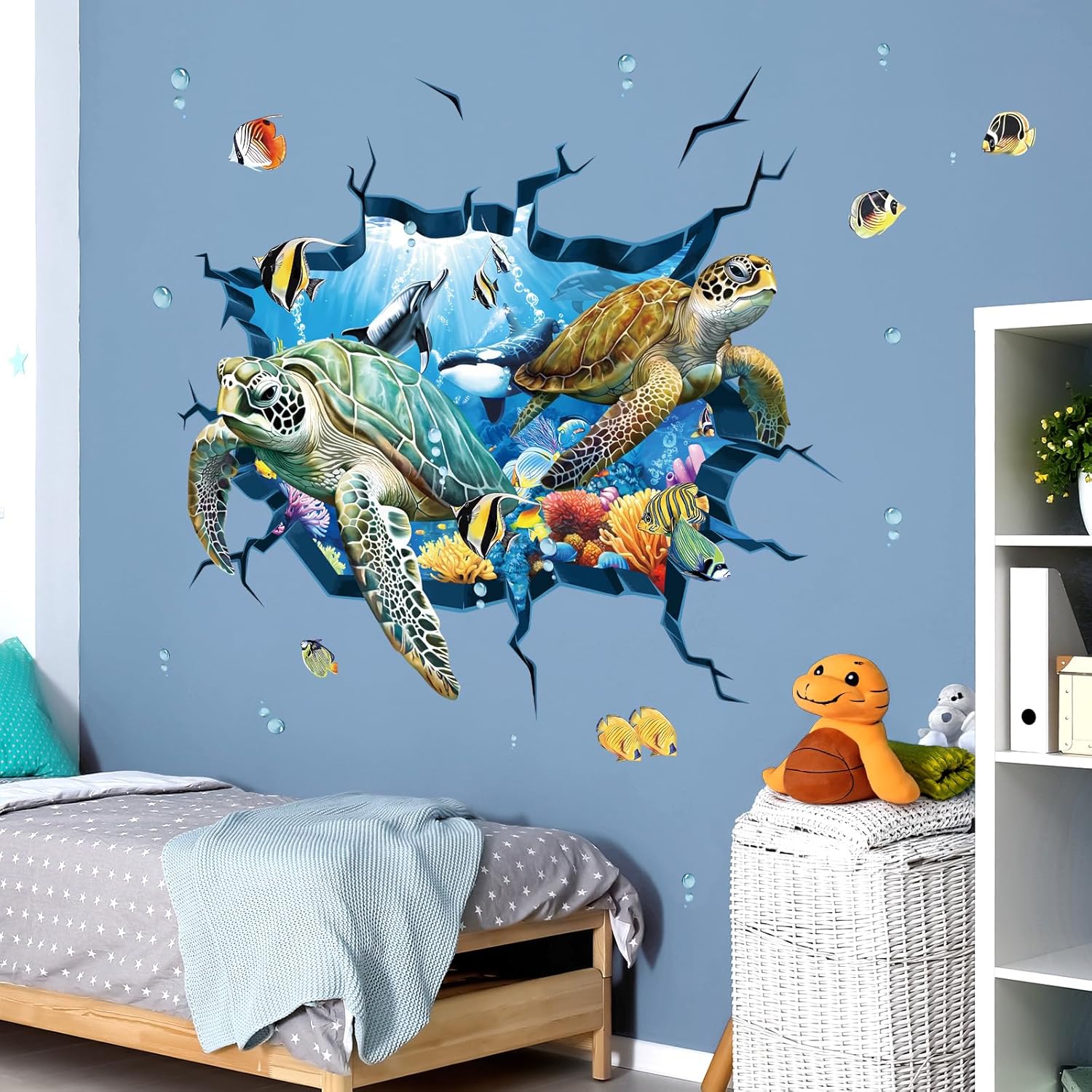 - decalmile 3d under the sea turtle wall decals are perfect to decorate boys bedroom, daycare, baby nursery, kids room, classroom and bathroom.
