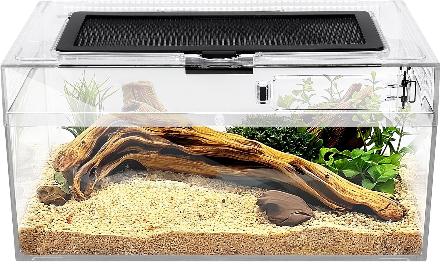 - 360ยฐ FULL VIEWING EXPERIENCE: Made of high-transparency PC material, this vivarium tank ensures a panoramic view of your reptile's world. Enhance your observation with an enclosure that brings the captivating reptilian habitat closer to you