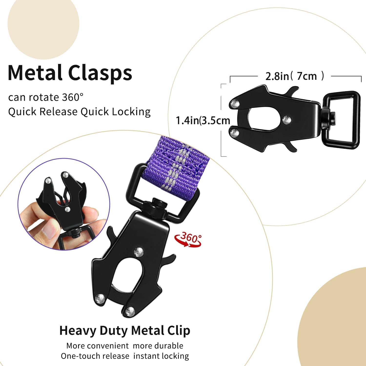 - 【🐕Quick Release Frog Clip 】heavy duty dog leash The 360° Rotating Frog Clip is made of Aviation Aluminum,can hold up to 400 pounds. Quick release and locking dog leash buckle while holding tight under strong pull. 360°rotatable to prevent the dog leash from twisting and knotting