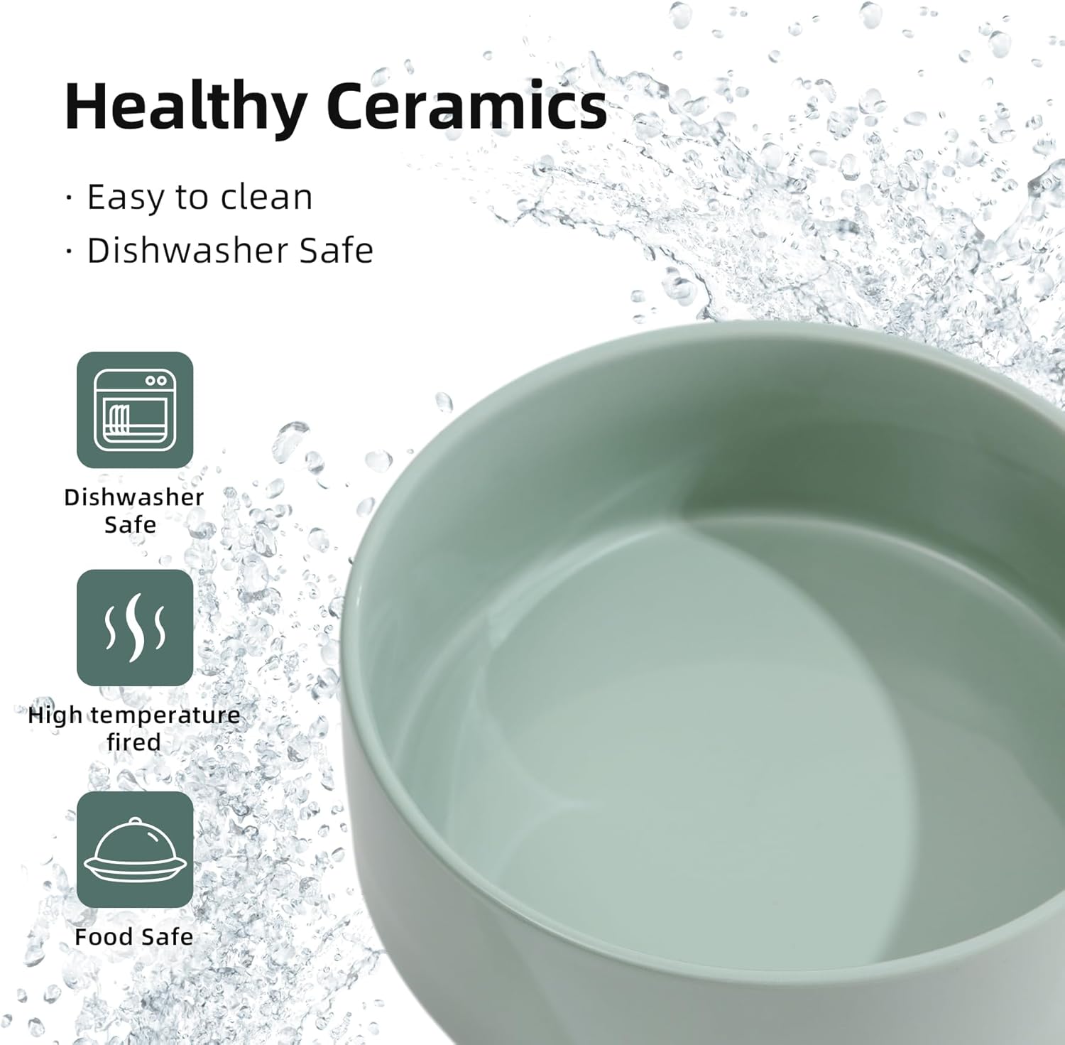 Ceramic Set of 2 Dog Bowls, Food and Water Bowls for Dogs, Puppy, 2pcs Dog Dishes, Pet Feeder(6inch, 2 x Light Green Bowls)
