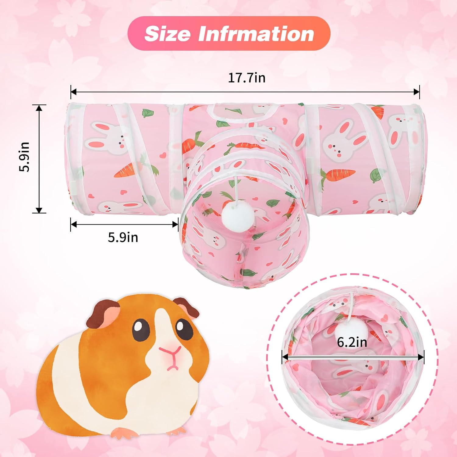 - BEST LITTLE TUNNEL/TOY TO PLAY: Our small animal tunnel with 3 spacious tunnels, peephole & beall toy, this popular guinea pig toy gives your rat more ways to have fun. Provides hours of exercise & self-amusement. small animal tunnel to provide your pet with more so much fun.Great for guinea pigs, chinchillas, ferrets, hedgehogs, mice, hamsters and other small animals.