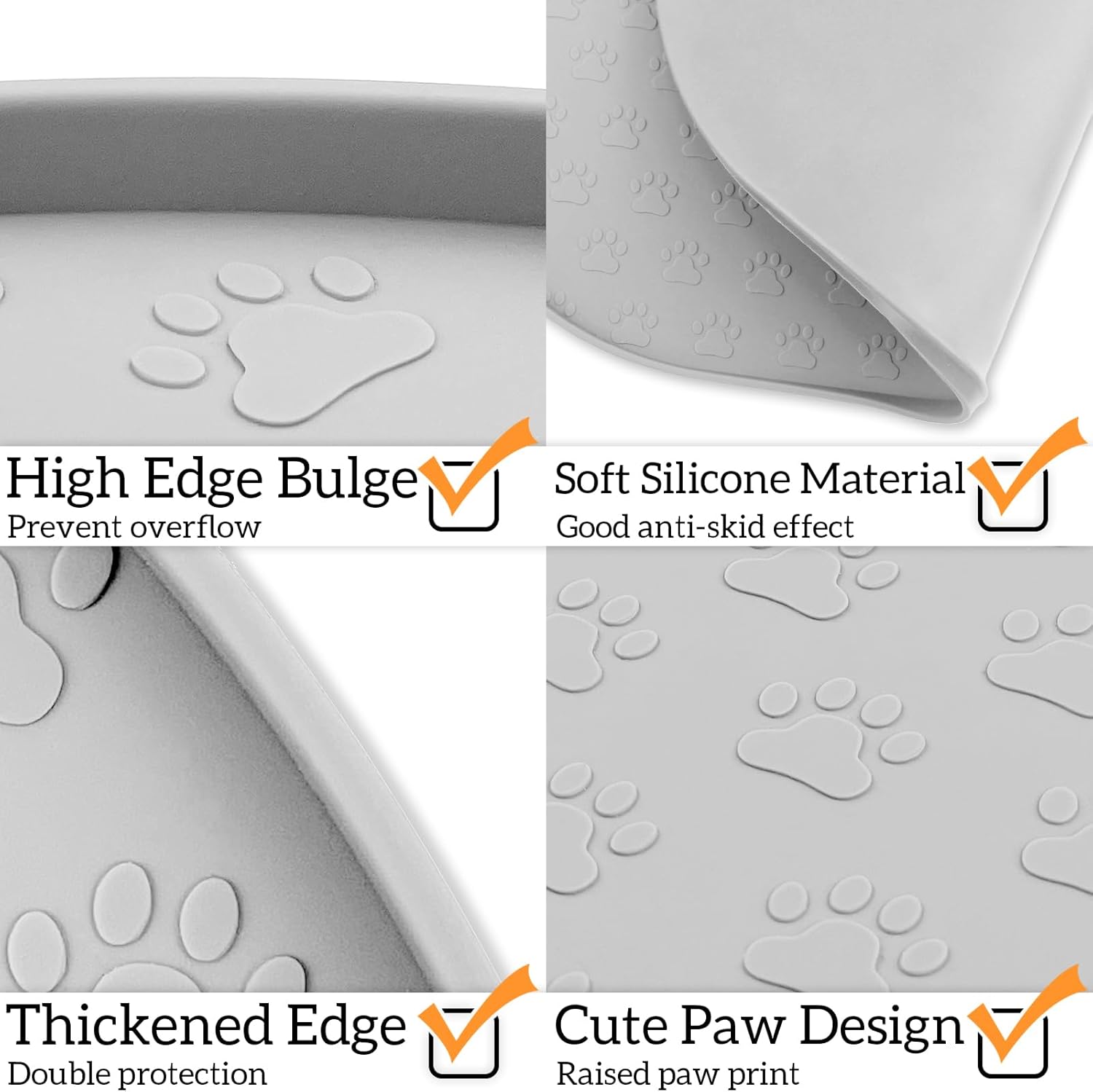 - Muti-Functional Use: This extra-large dog feeder mat accommodates various types of bowls and pet supplies - mats under food and water bowls, cat fountains, feeder stations and litter boxes to prevent clutter. Pet placemats are suitable for all breeds of cats, dogs, puppies, doggies and other animals.