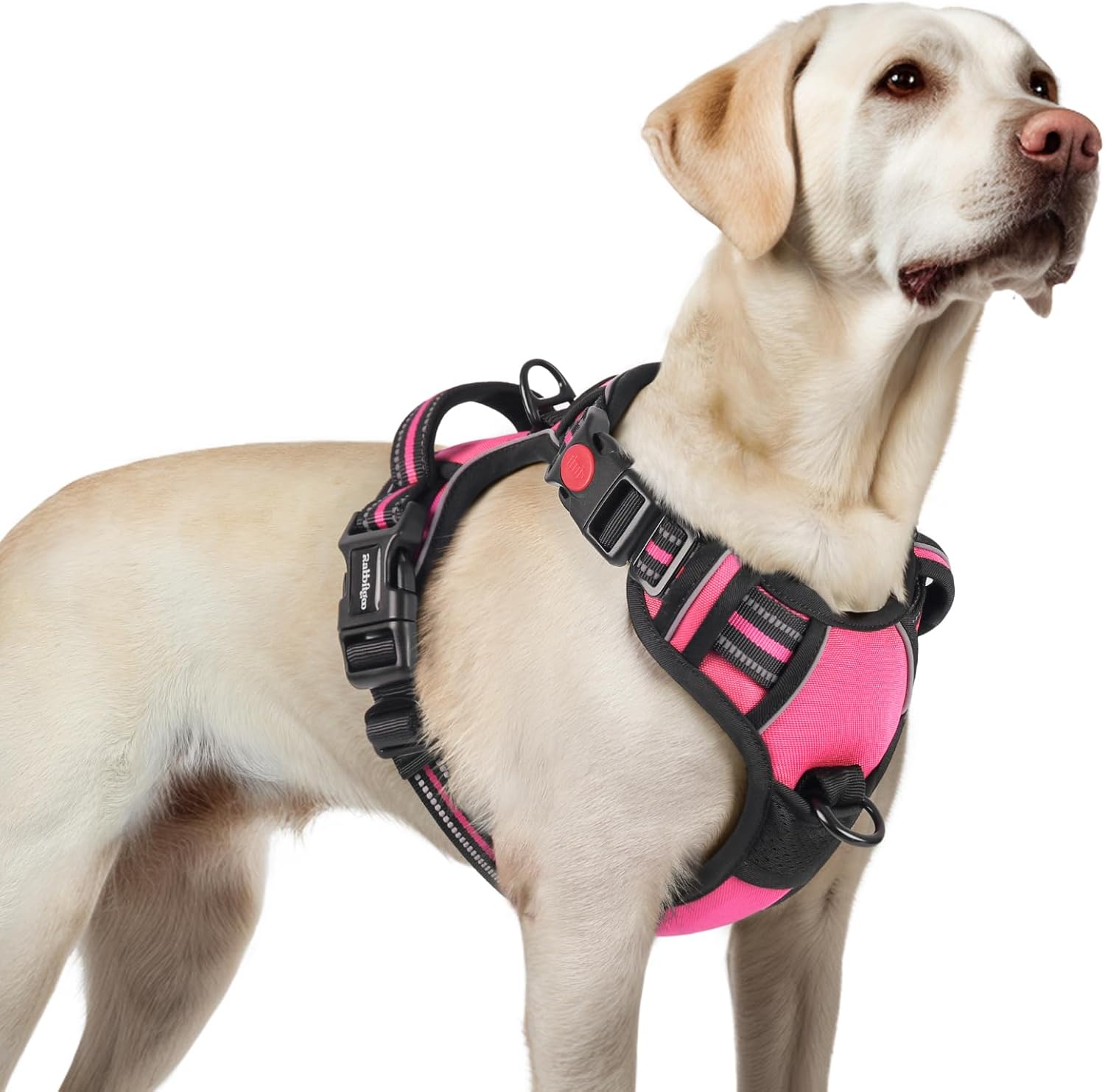 rabbitgoo Dog Harness for Large, No Pull Pet Harness with 3 Buckles, Adjustable Soft Padded Vest with Control Handle, Walking Reflective Pet Vest for Large Dogs, Rose Pink, L