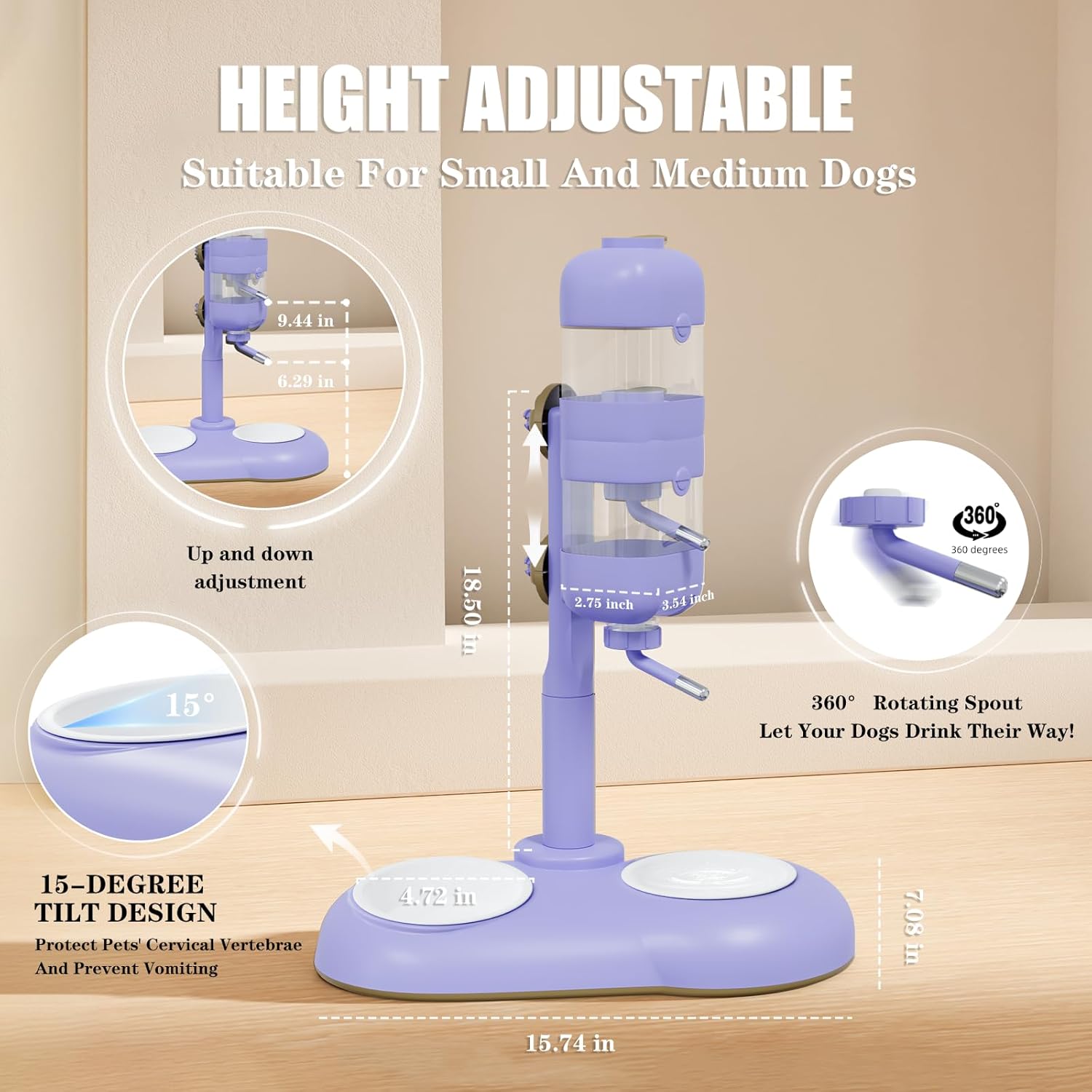 Dog Bowls with Puppy Weaning Bottles,3 in 1 Dog Bowl Set with Water Dispenser and 2 Food Grade Ceramic Bowls for Cats,Bunnies,Ferrets and Small Sized Dogs(Purple)