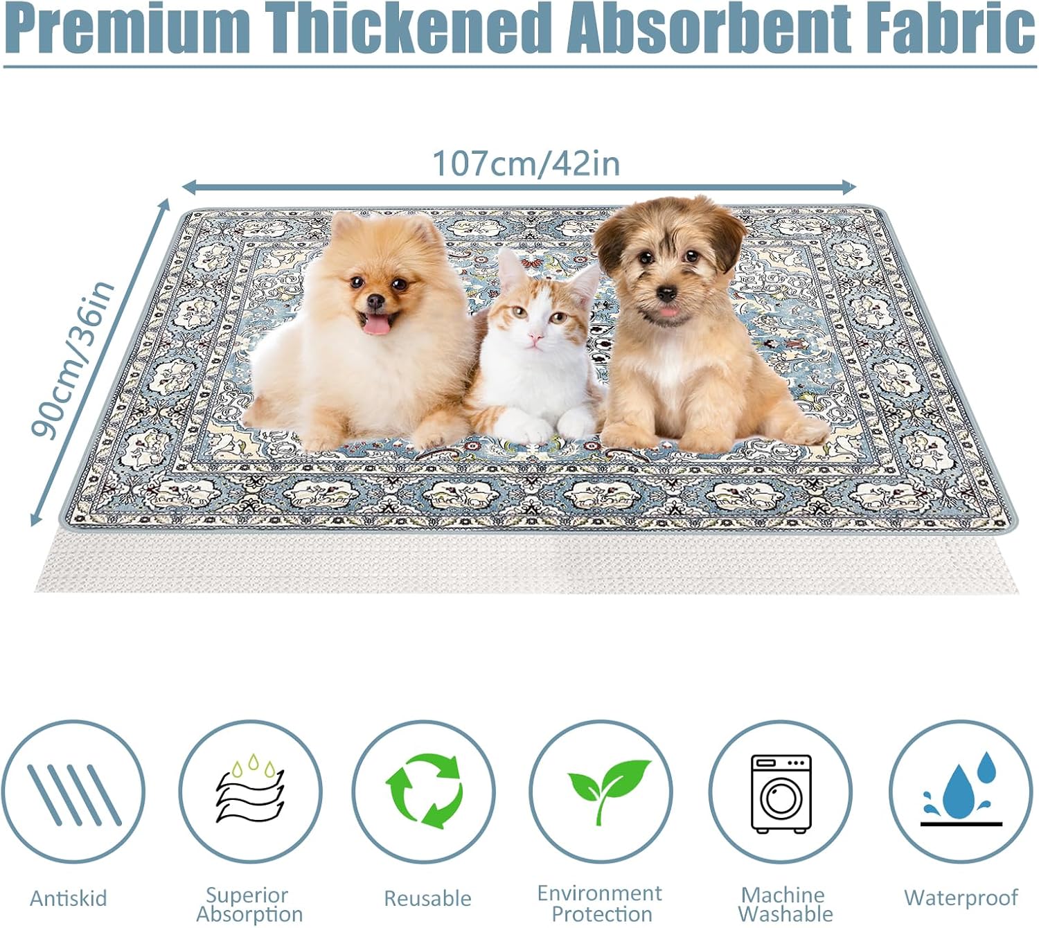 Washable Pee Pads for Dogs, (2 Pack, 36"x42") Upgrade Reusable Puppy Pads with Non-Slip Rug Pad, Super Thickening Absorbent Leakproof Dog Traning Pads Whelping Pad for Dogs, Doggie(Blue-2)